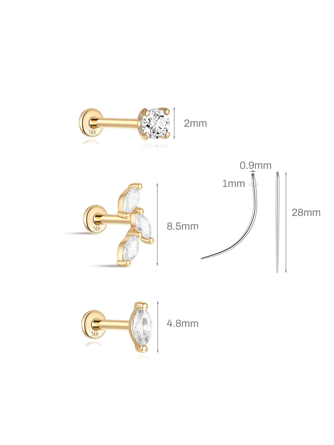- Materials: 14K Solid Gold Top,14K Solid Gold Flatback Post
