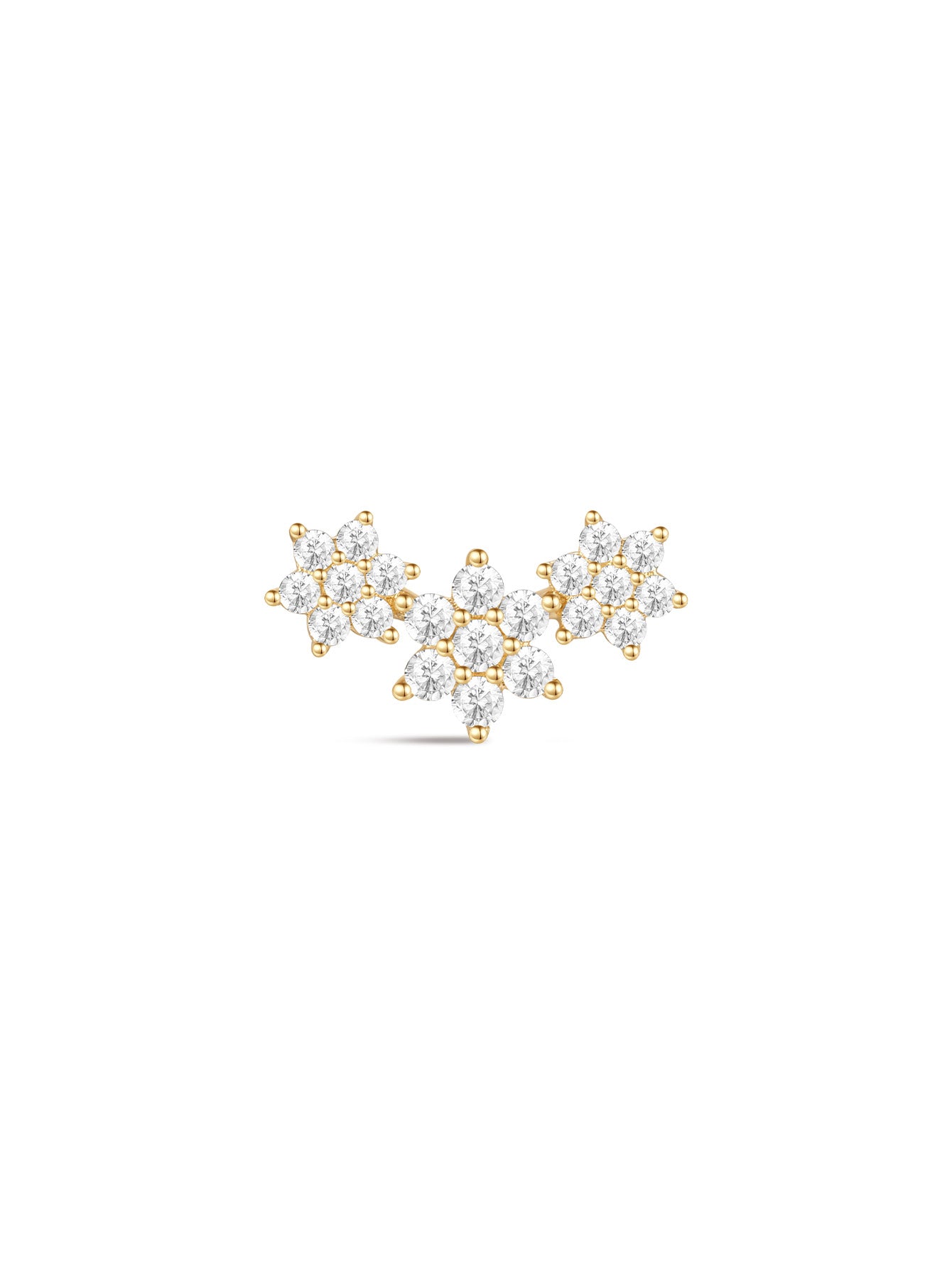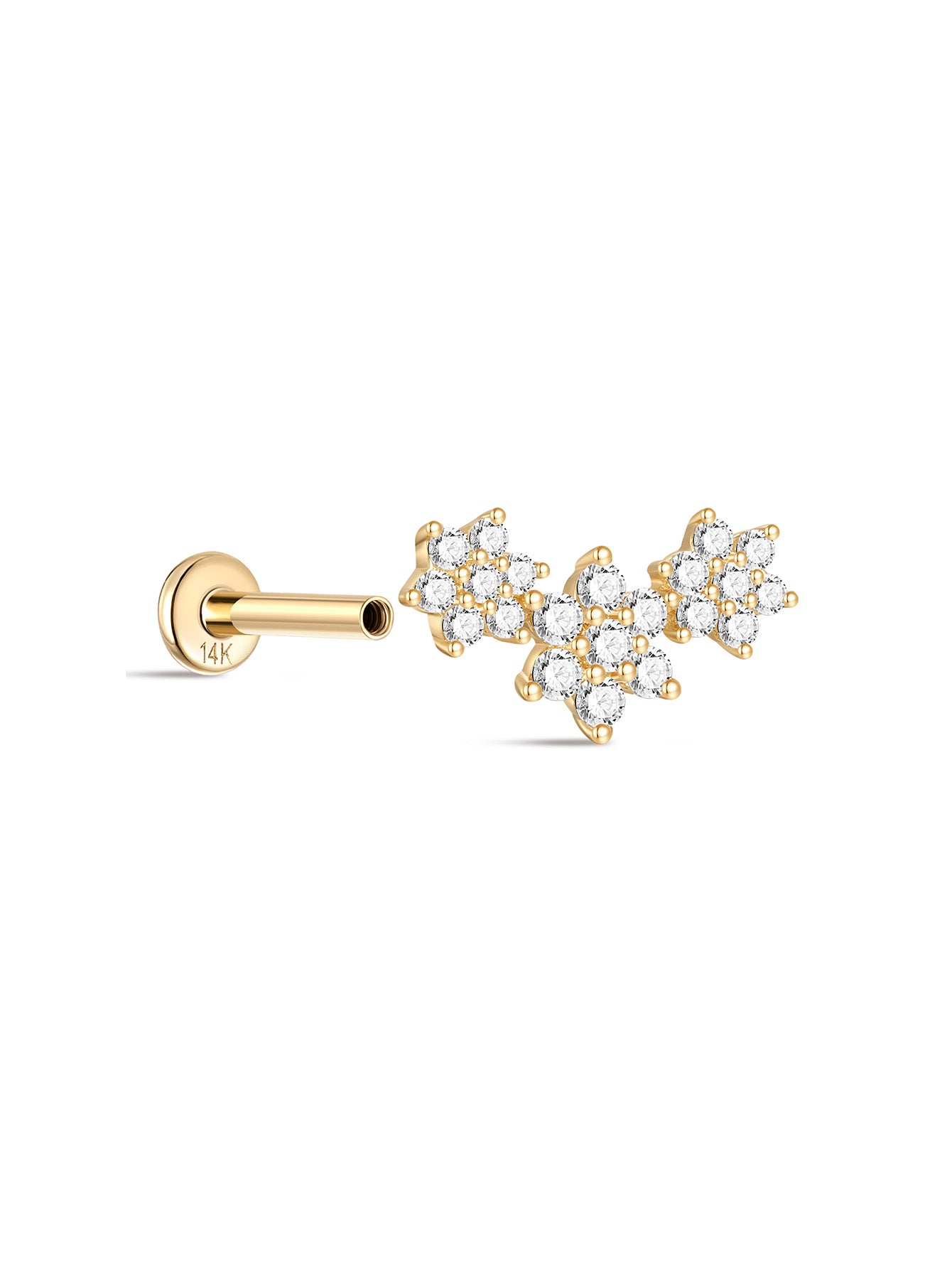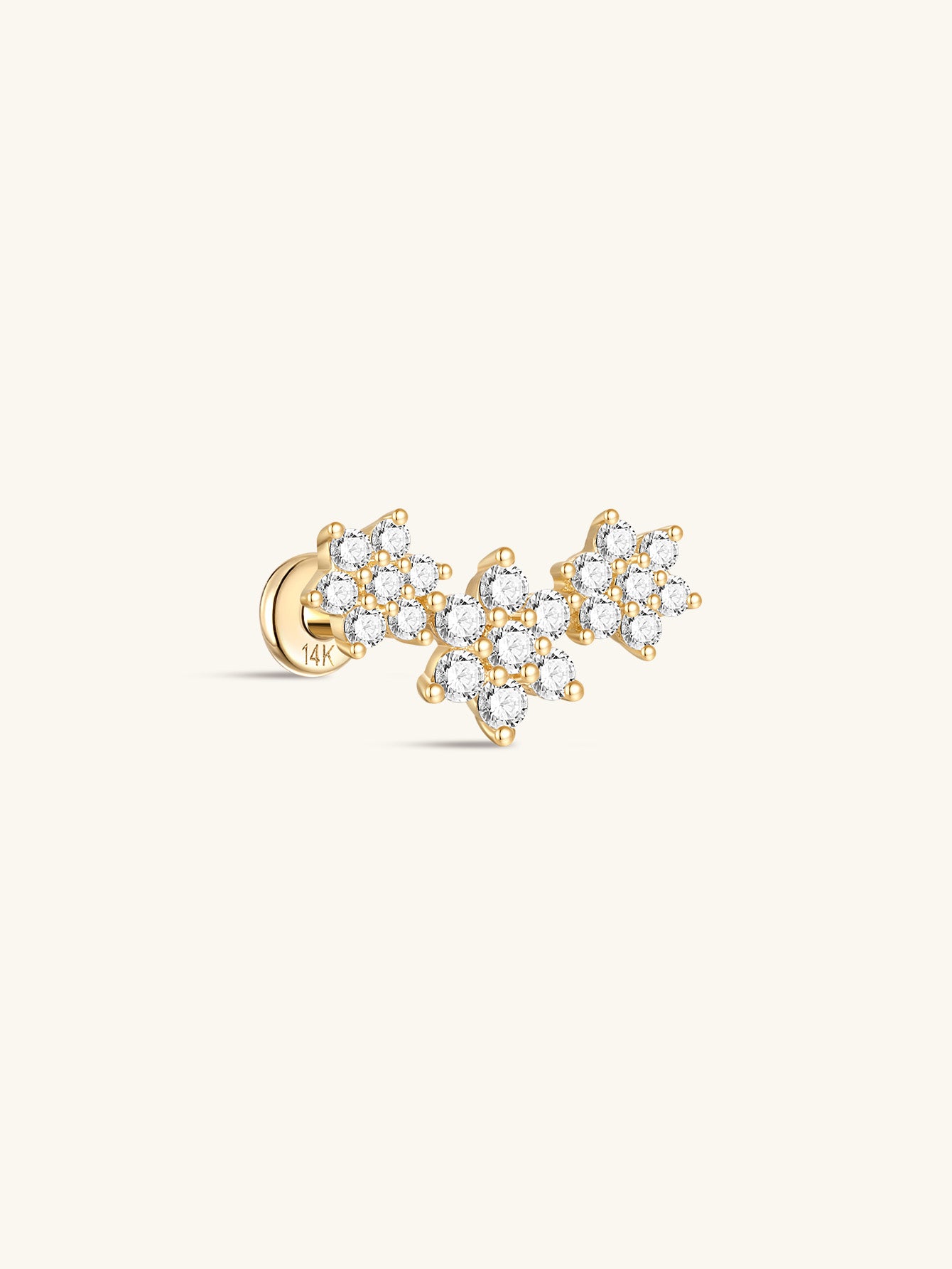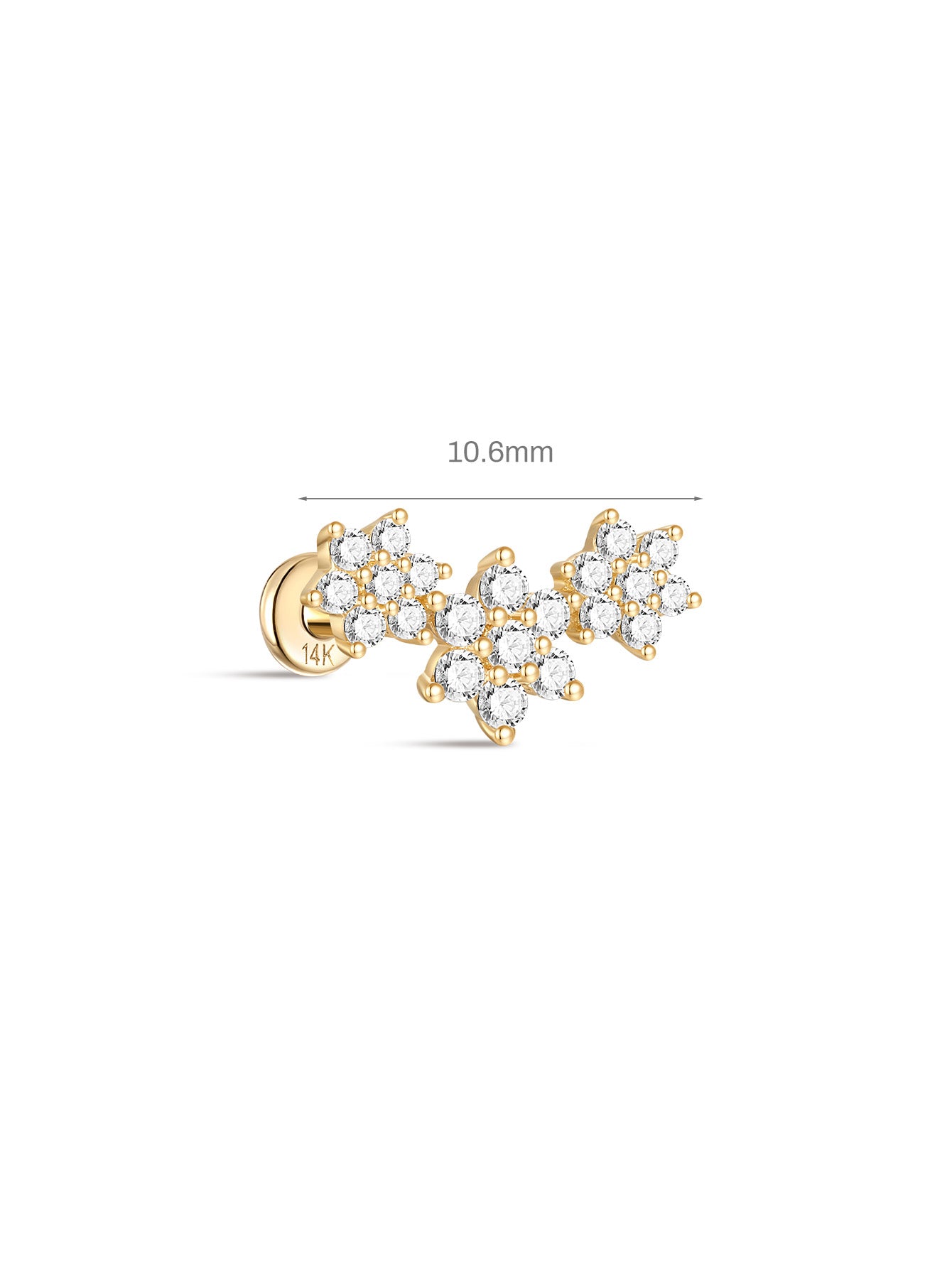 14K Solid Gold Flourishing Flowers Ear Piercing Stud