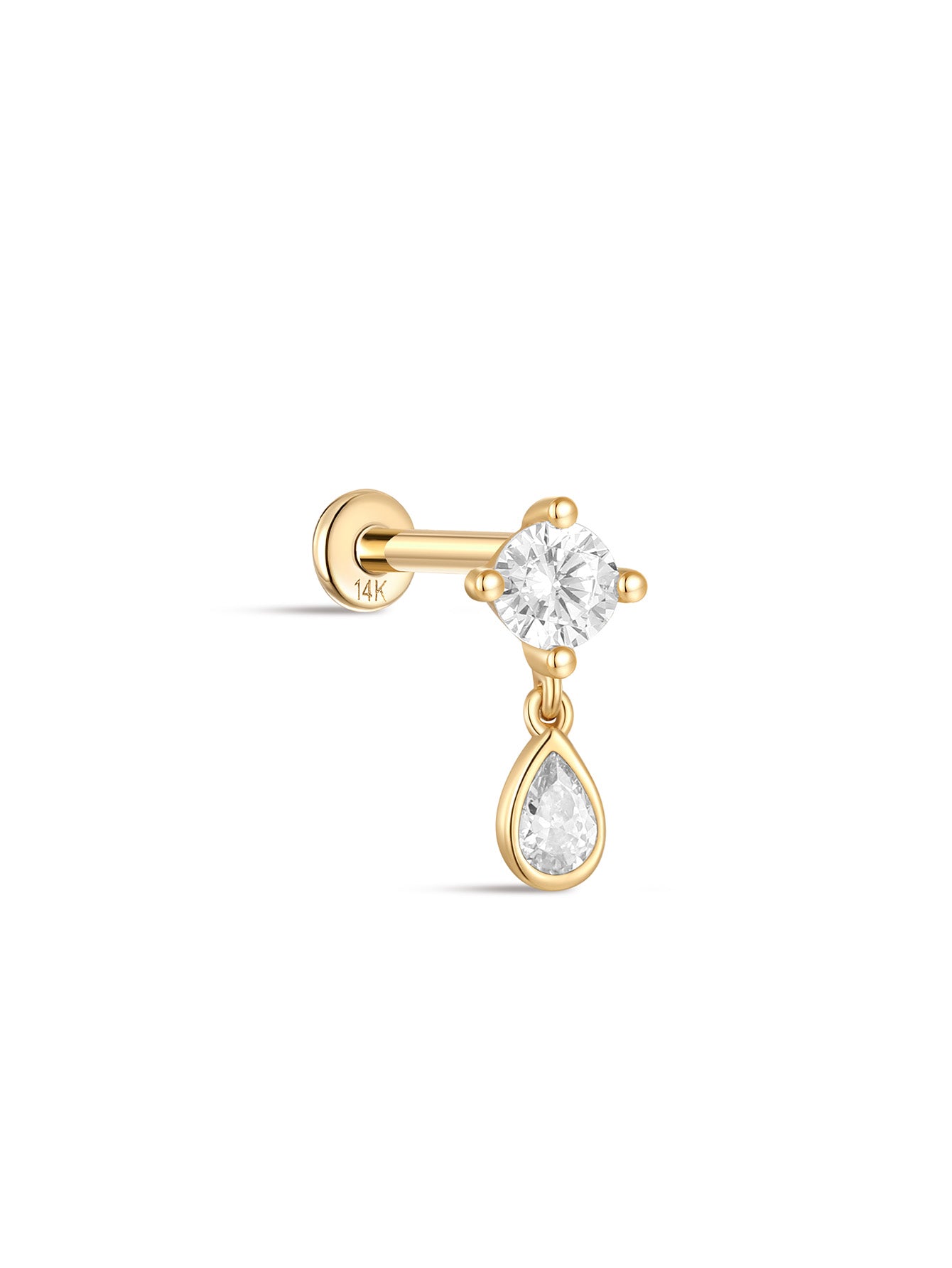 14K Solid Gold Four-Claw Tassel Pendant Zircon Ear Piercing Stud