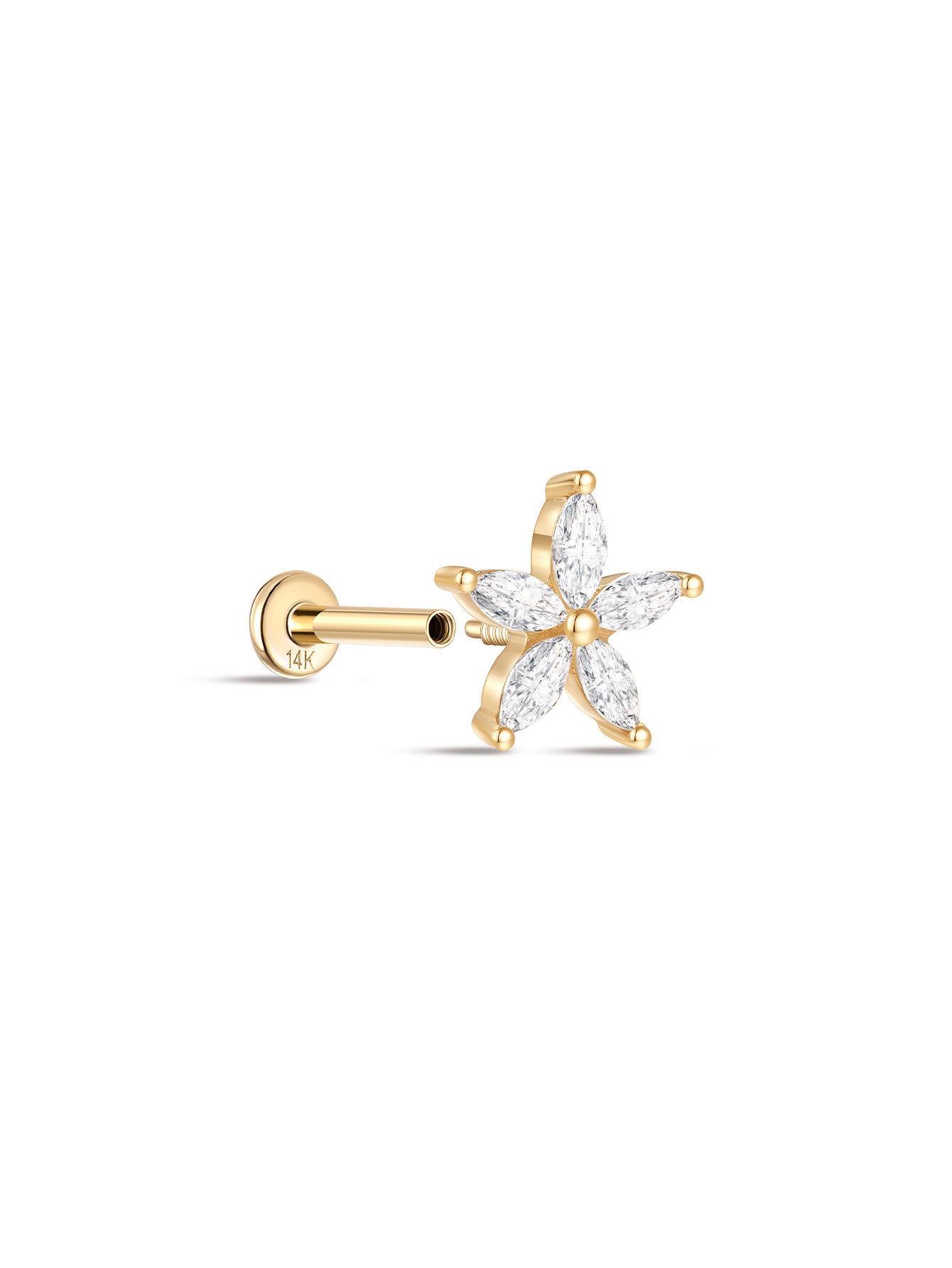 14K Solid Gold Marquise Bloom Ear Piercing Stud
