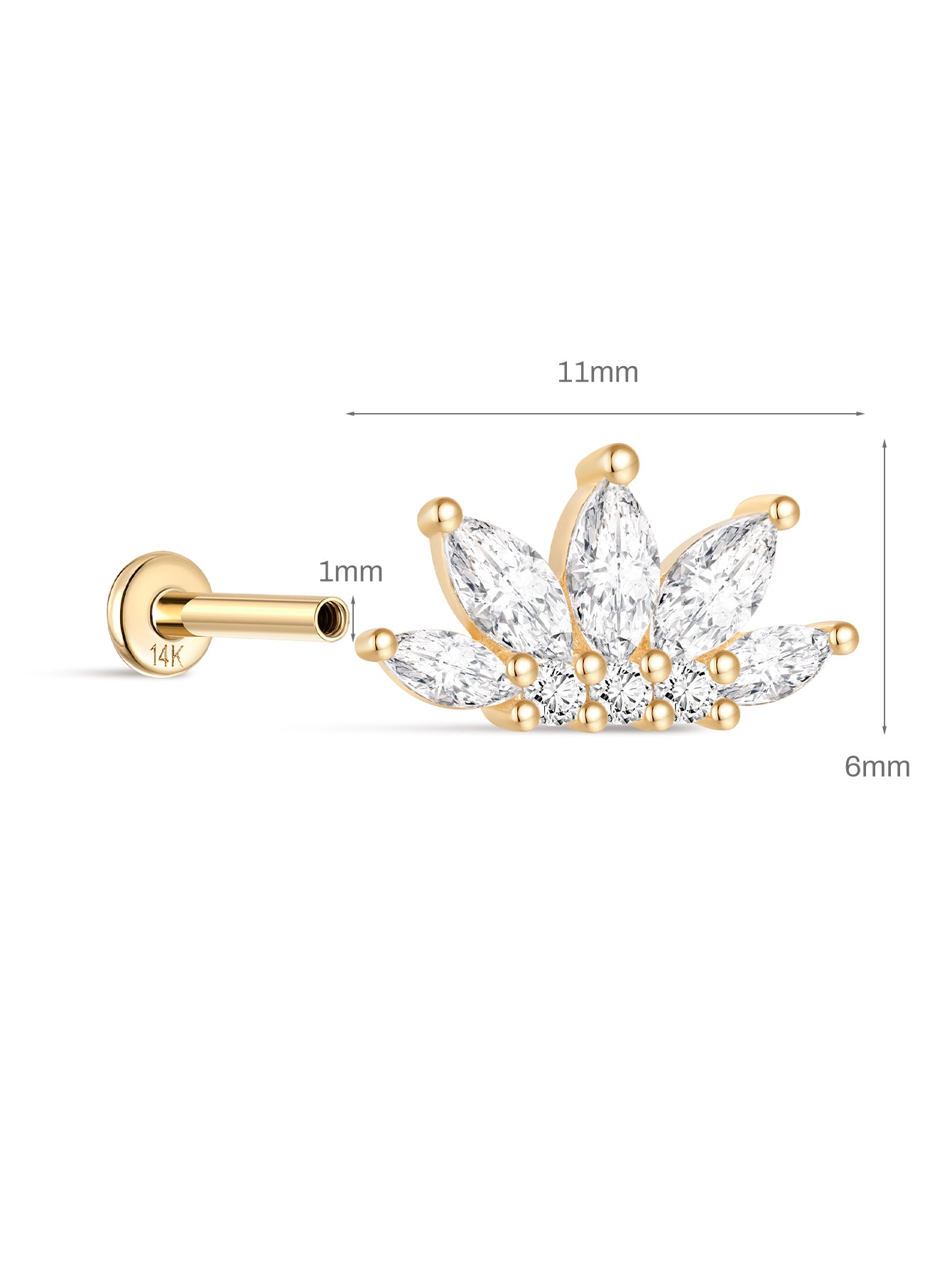 - Materials: 14K Solid Gold Top,14K Solid Gold Flatback Post