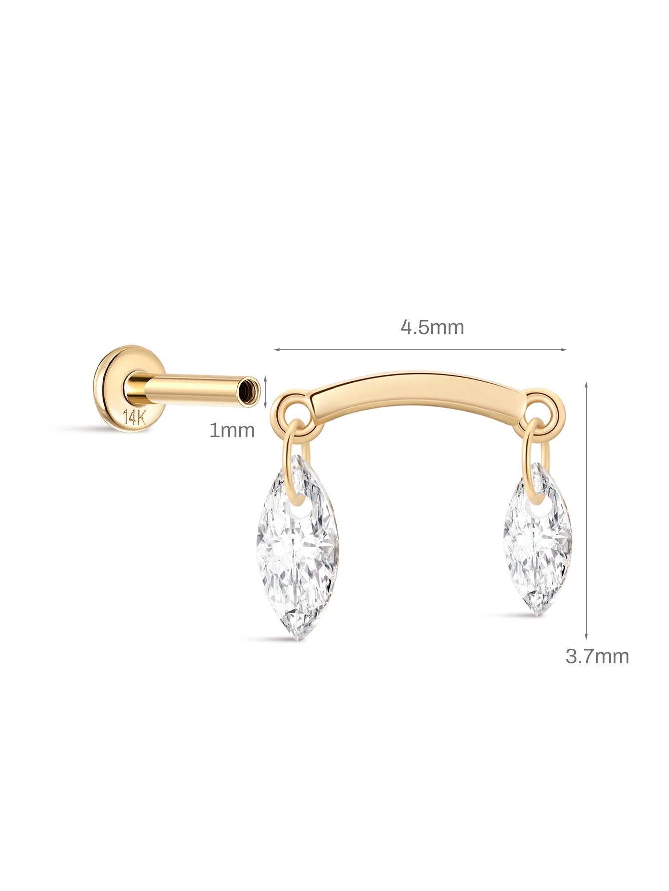 - Materials: 14K Solid Gold Top,14K Solid Gold Flatback Post