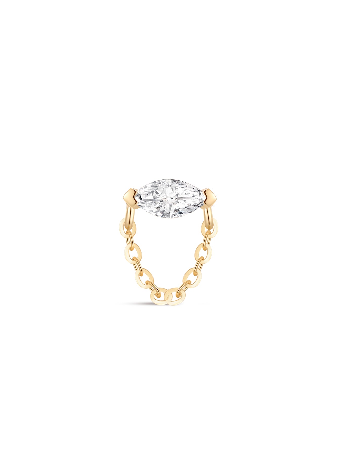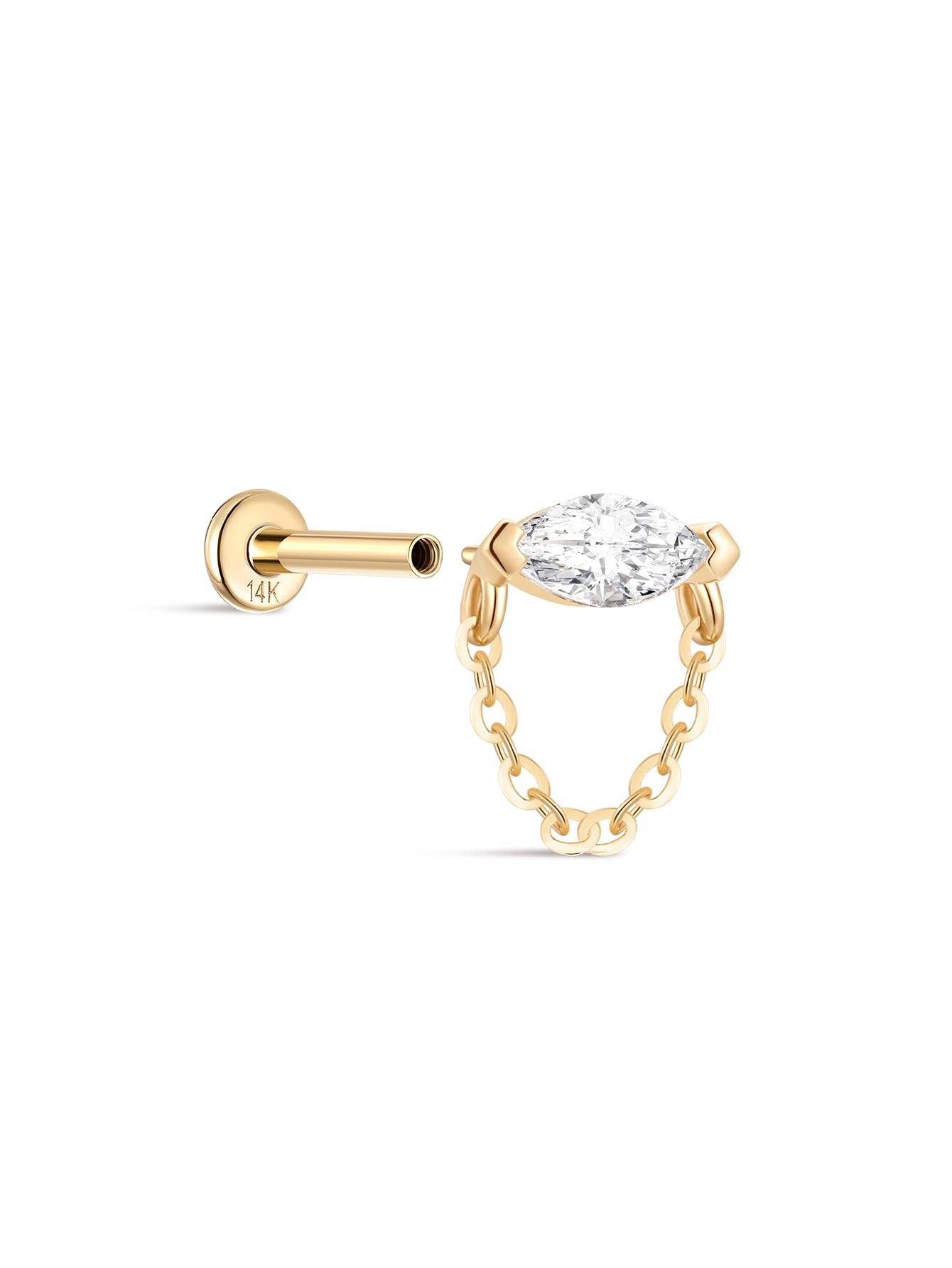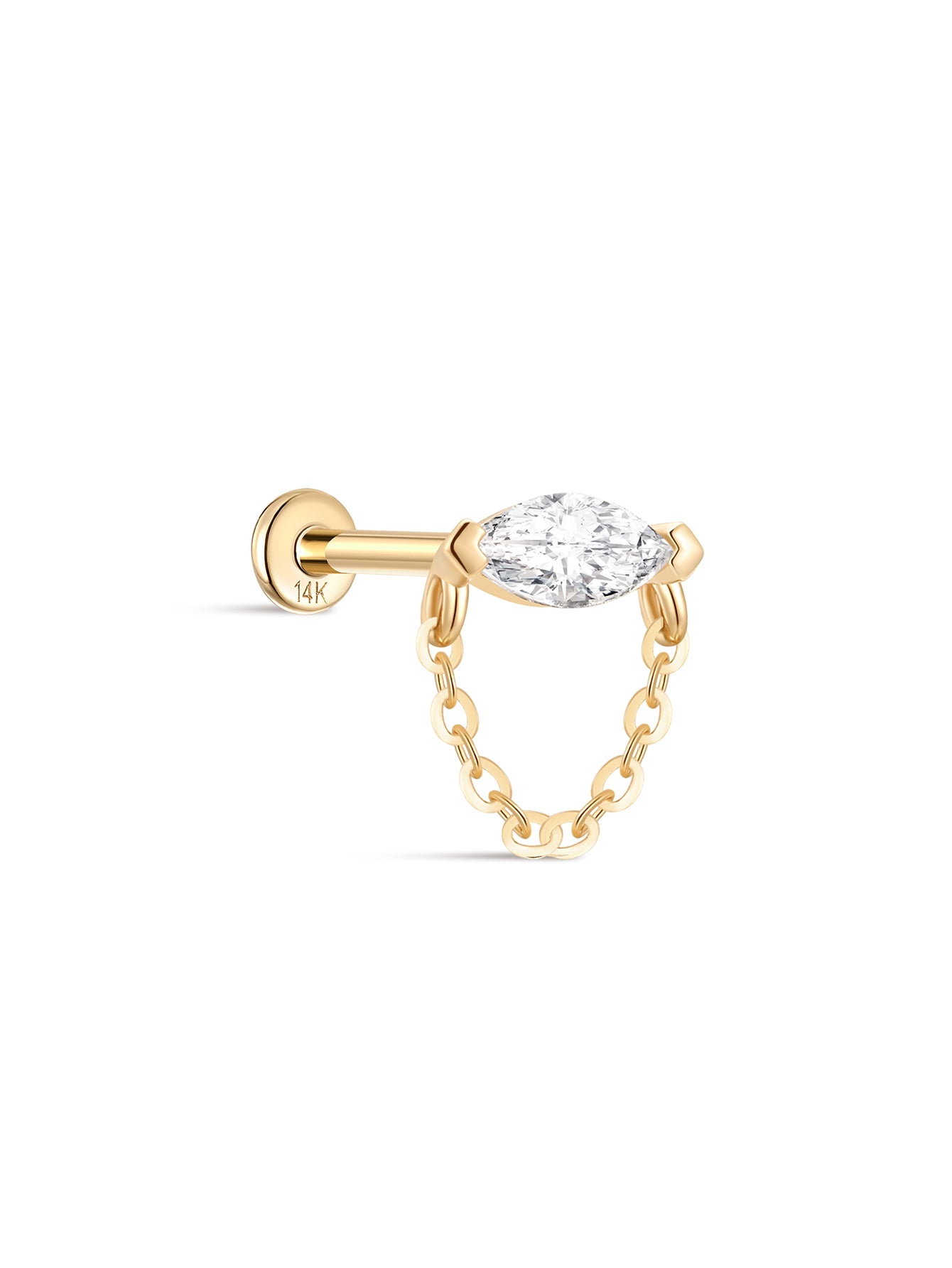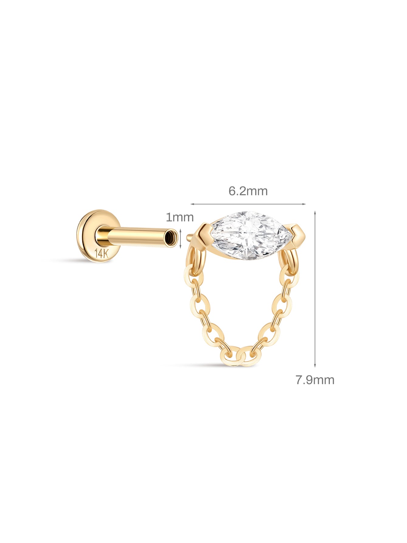 14k Solid Gold Marquise Tassel Ear Piercing Stud