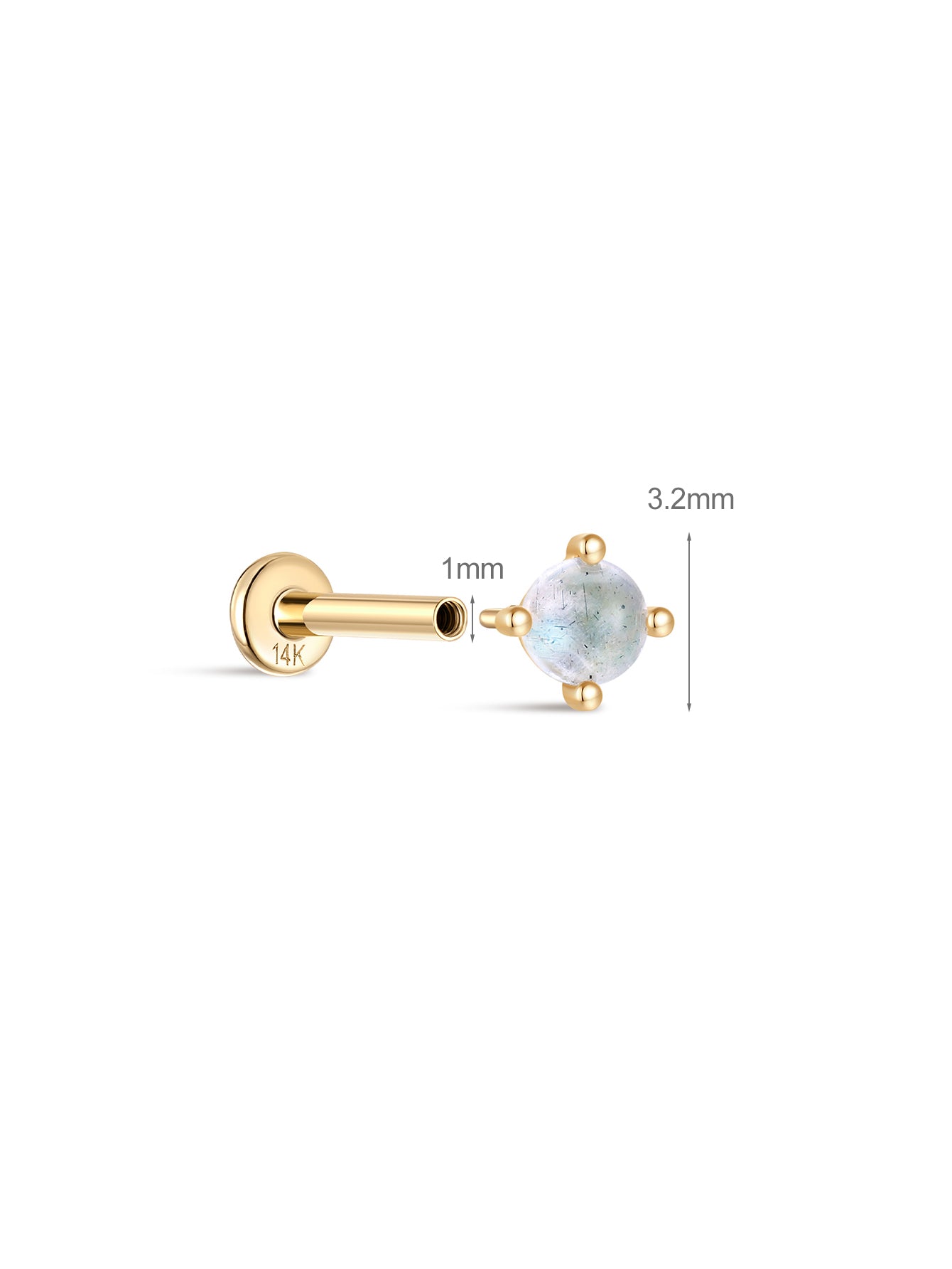 14K Solid Gold Micro Moonstone Flatback Stud