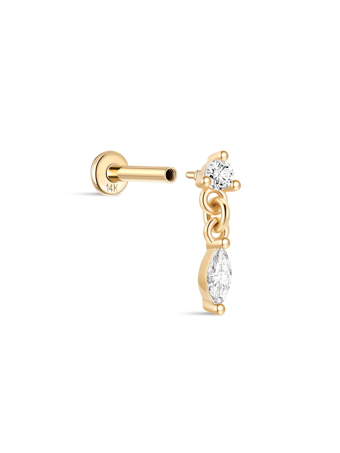 14K Solid Gold Minimalist Marquise Tassel Flatback