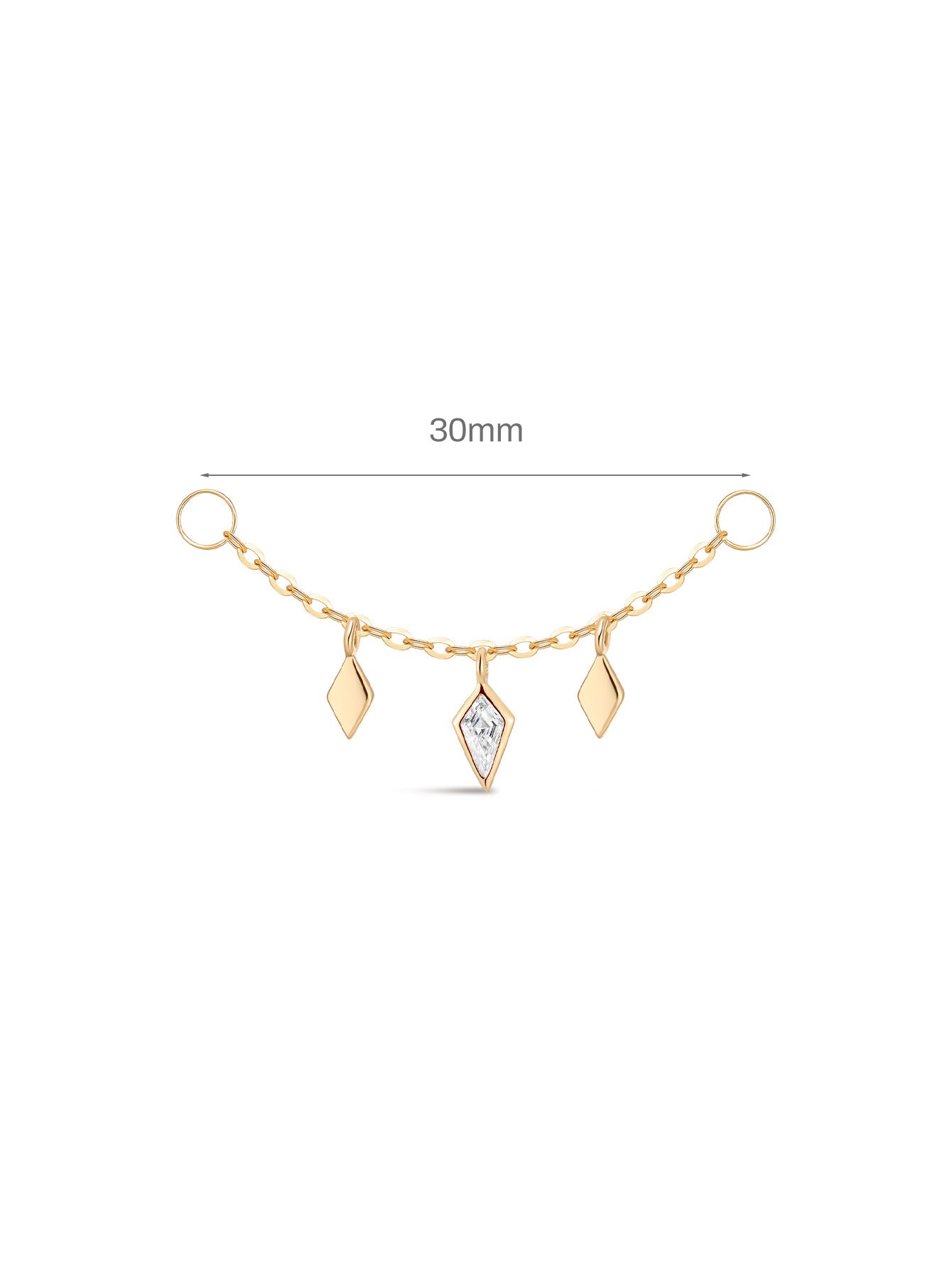 14K Solid Gold Rhombus Pendant Chain Hoop Charm