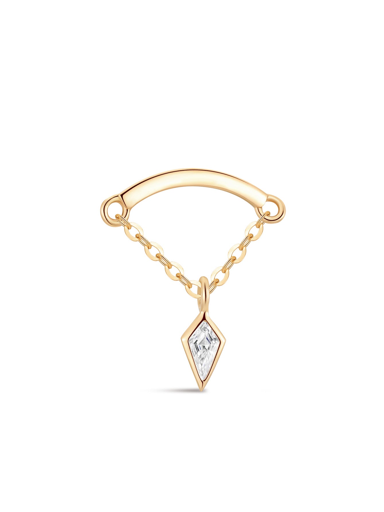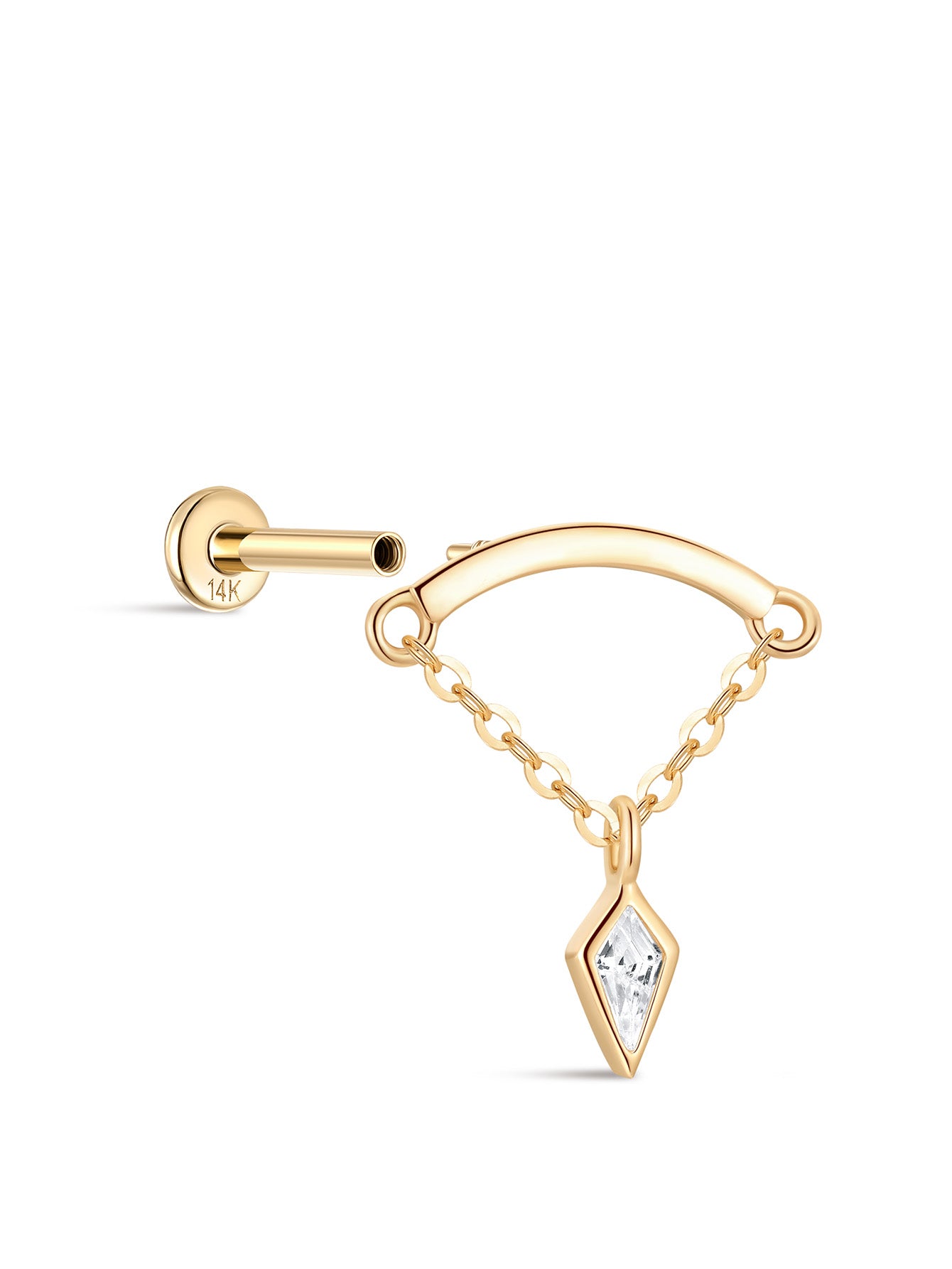 14K Solid Gold Rhombus Tassel Ear Piercing Stud