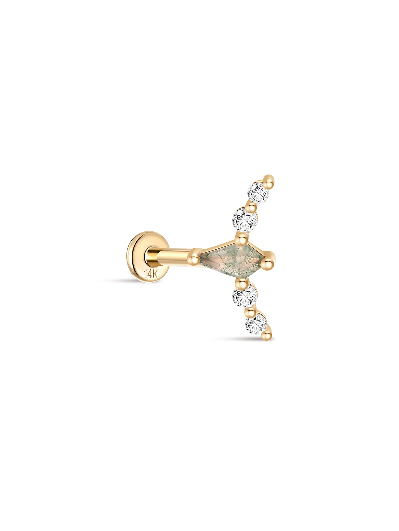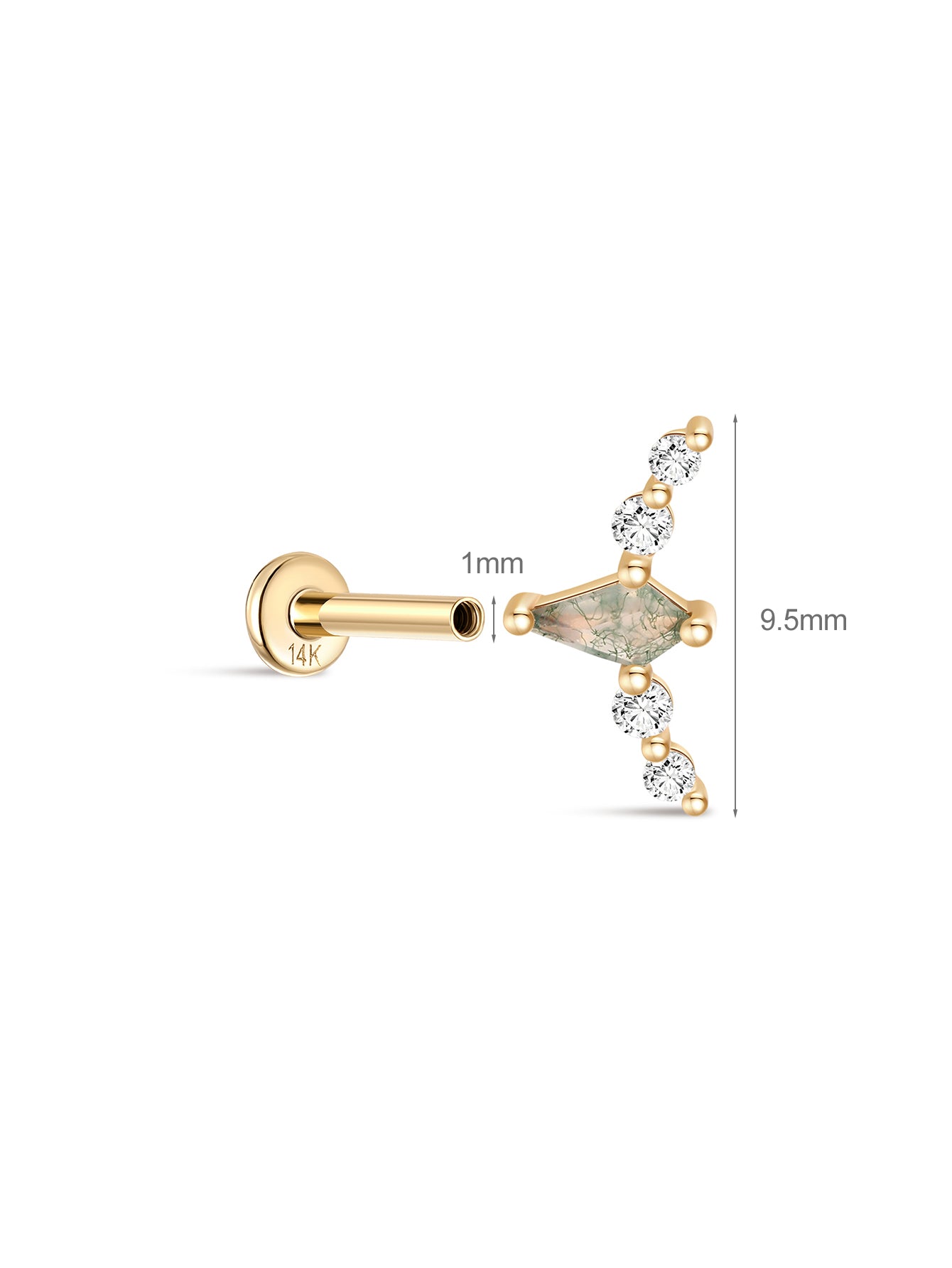 14K Solid Gold Rhombus Moss Agate Flatback Stud