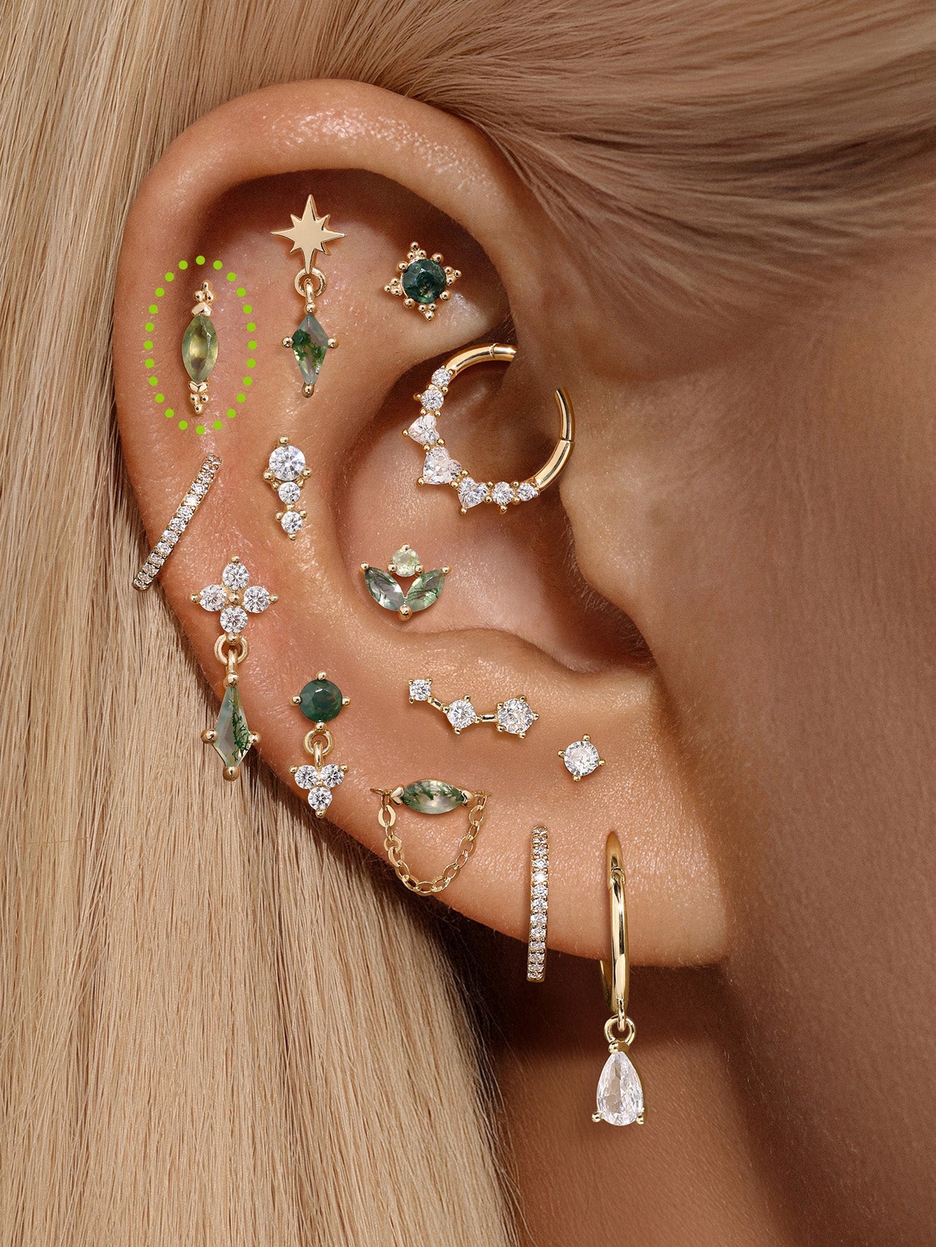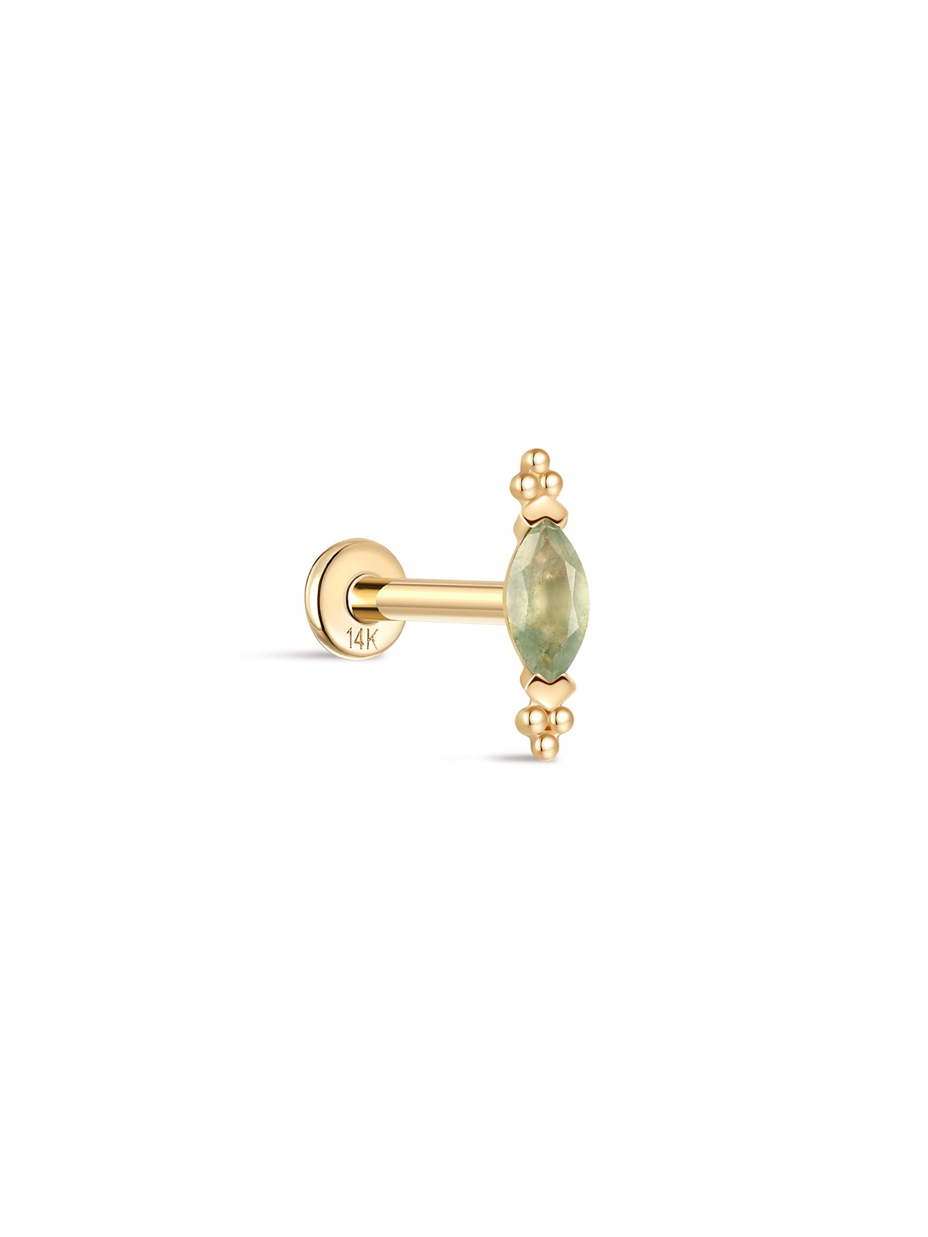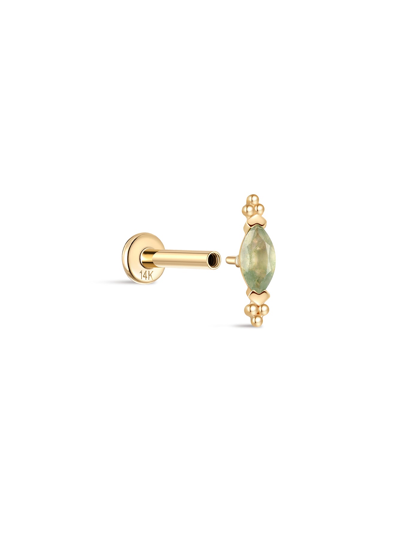 14K Solid Gold Shiny Moss Agate Flatback Stud