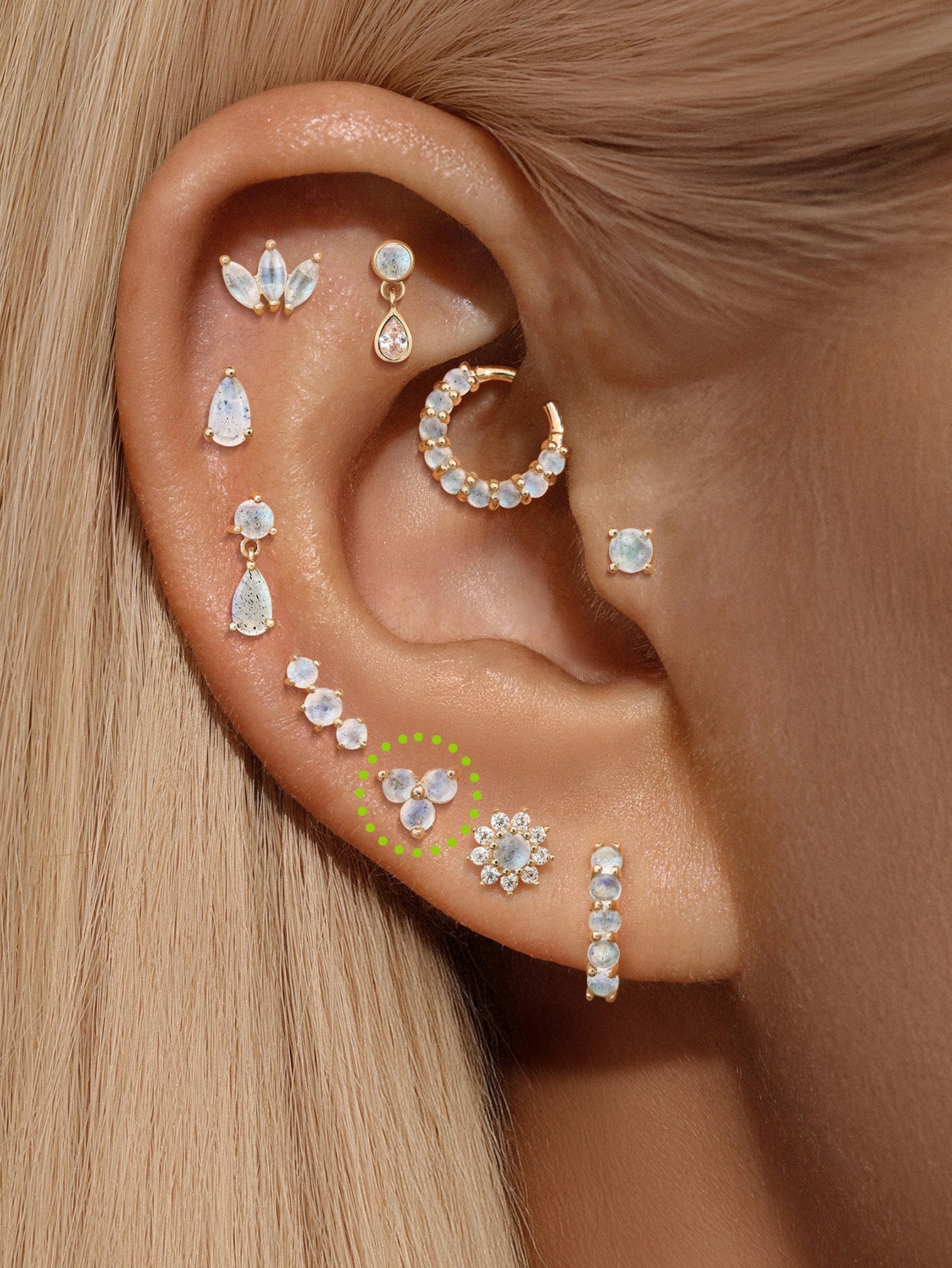 14K Solid Gold Trinity Moonstone Flatback Stud