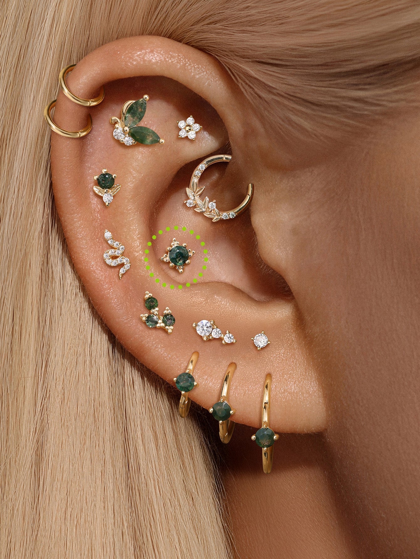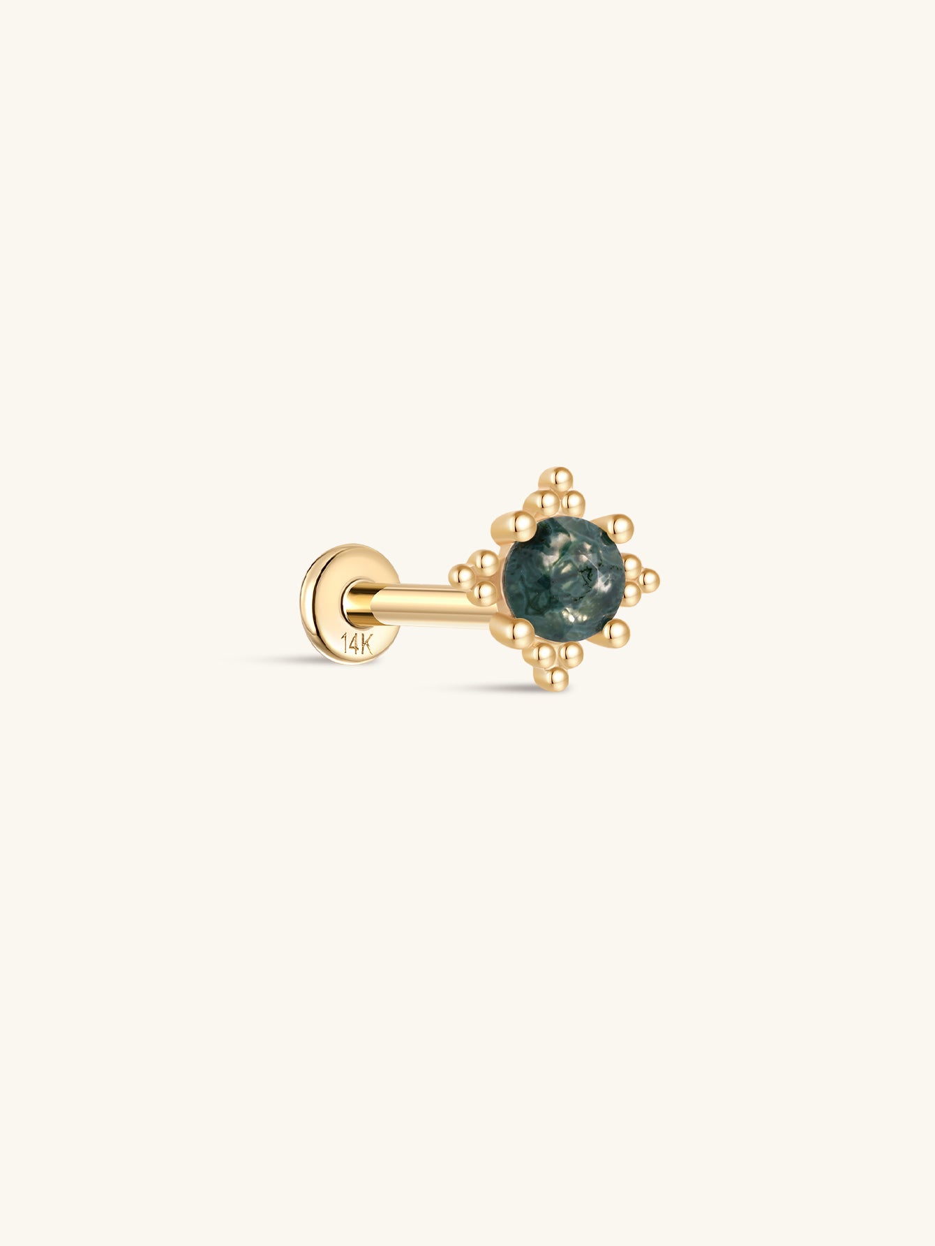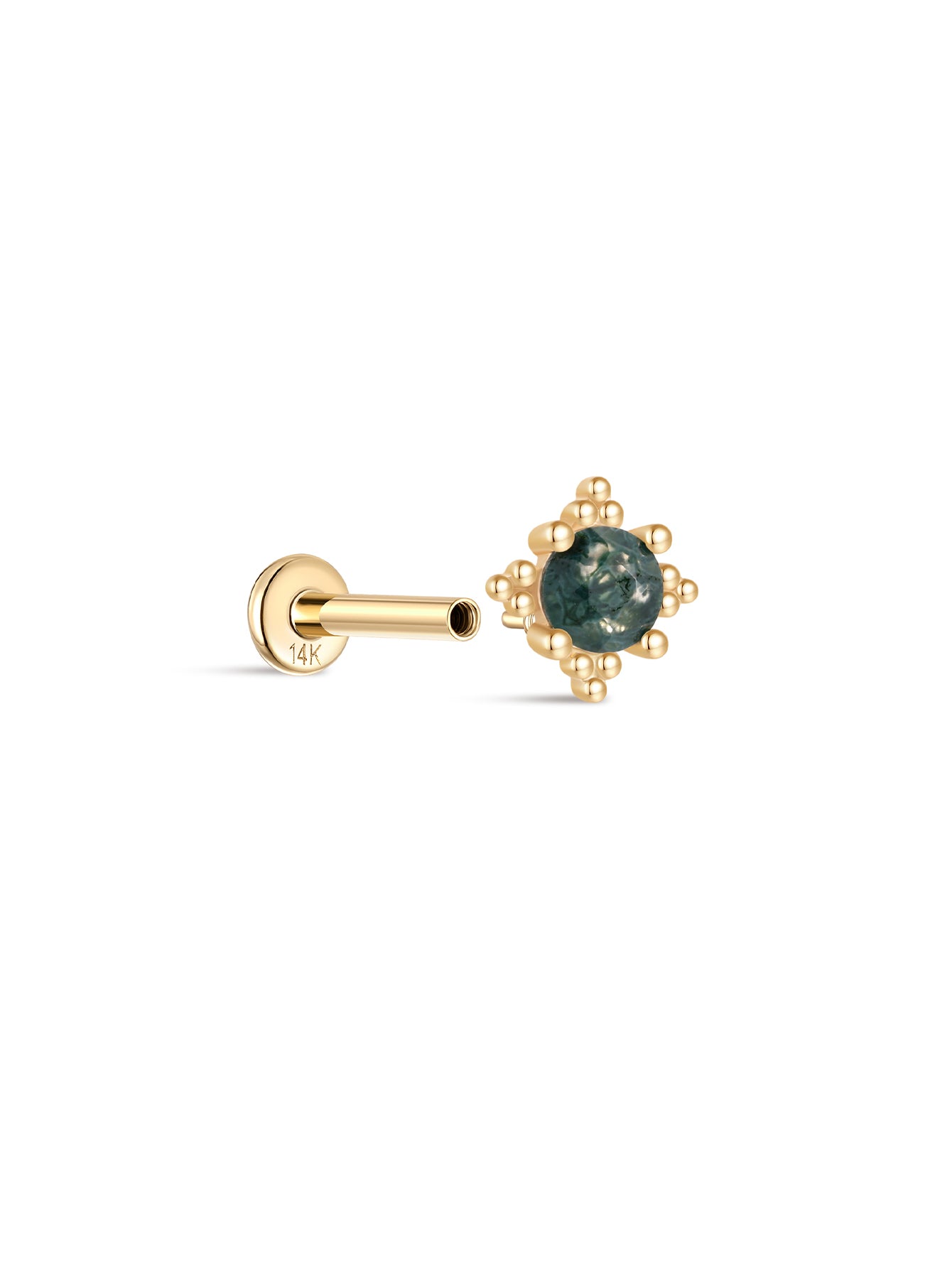 14K Solid Gold Moss Agate Classic Flatback Stud