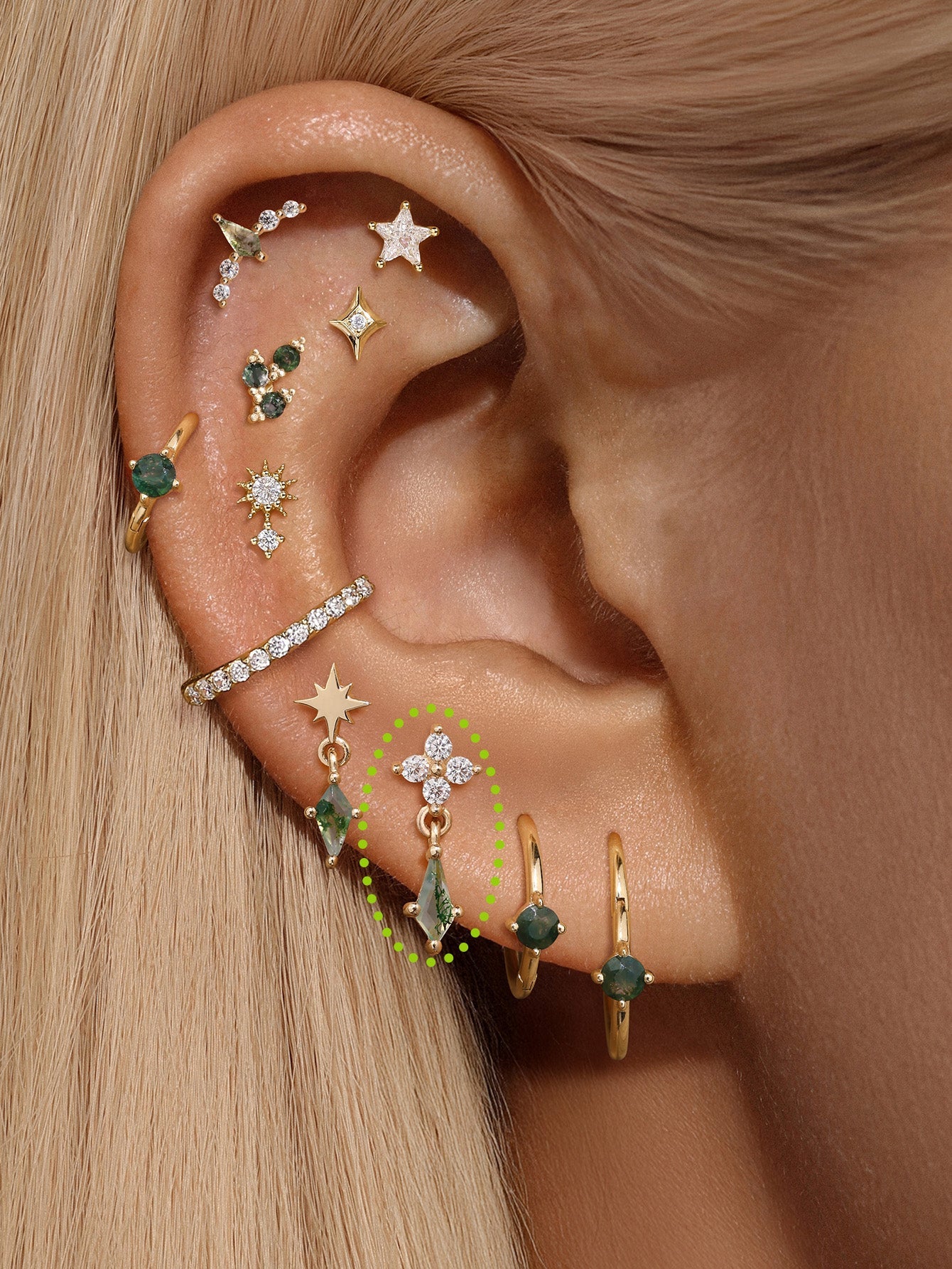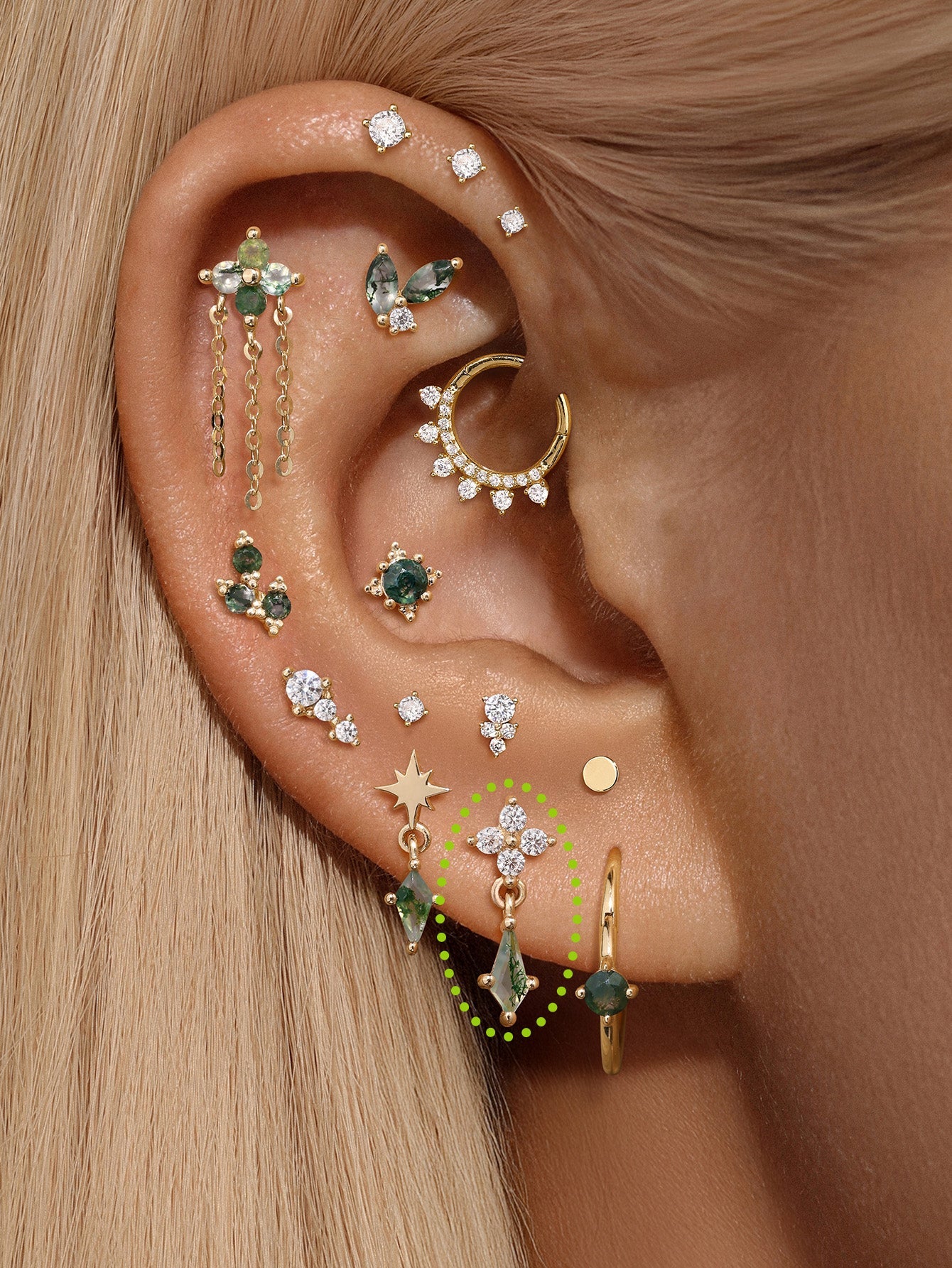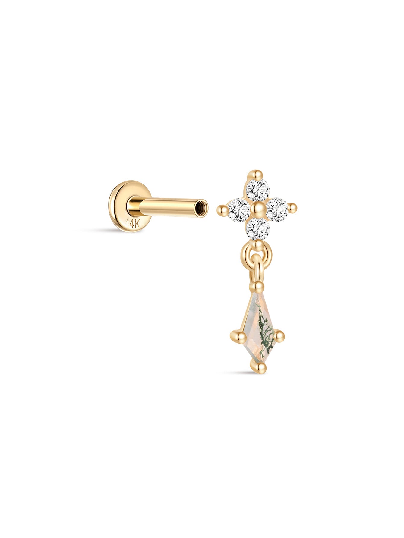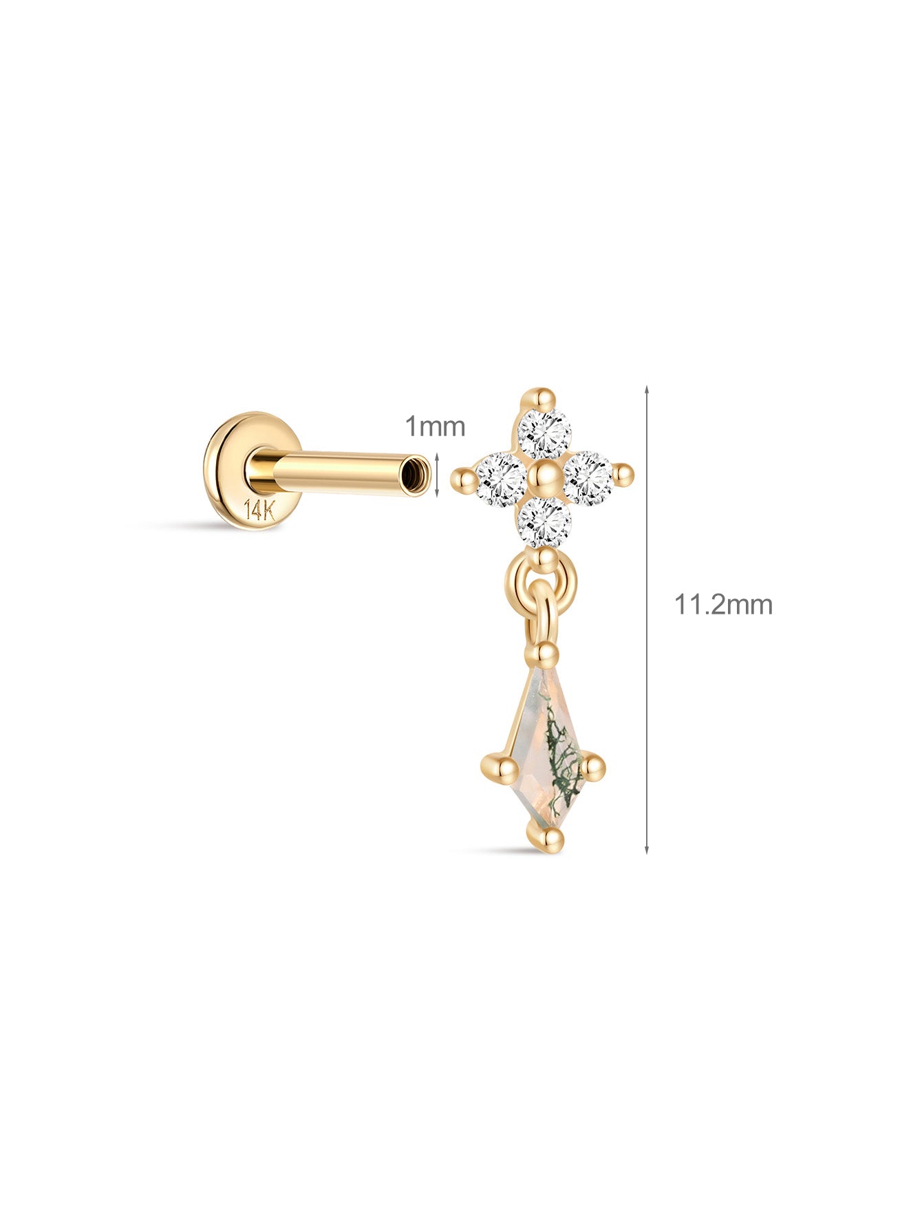 14K Solid Gold Moss Agate Flower Flatback Stud