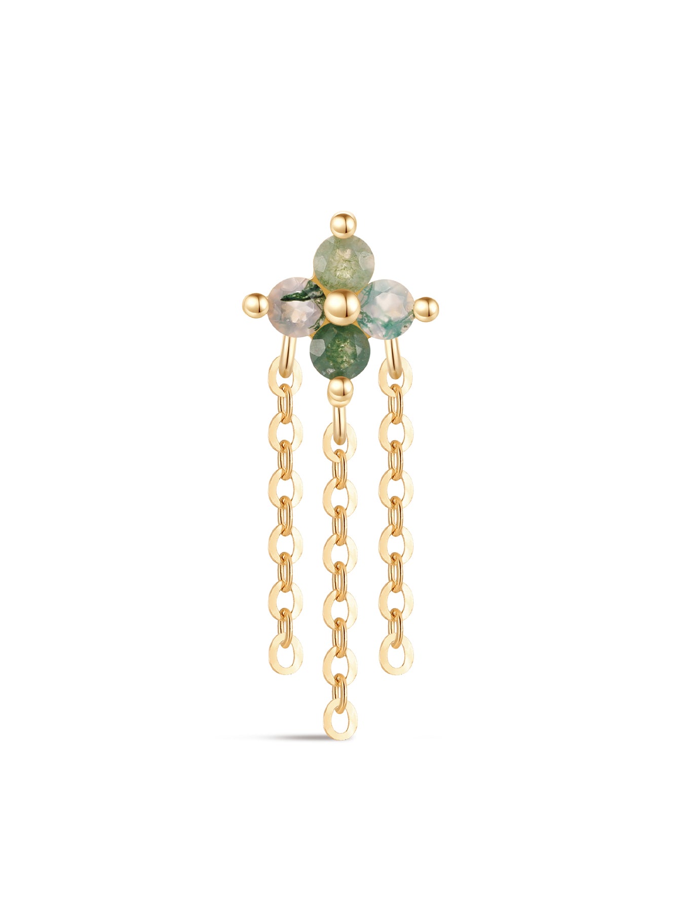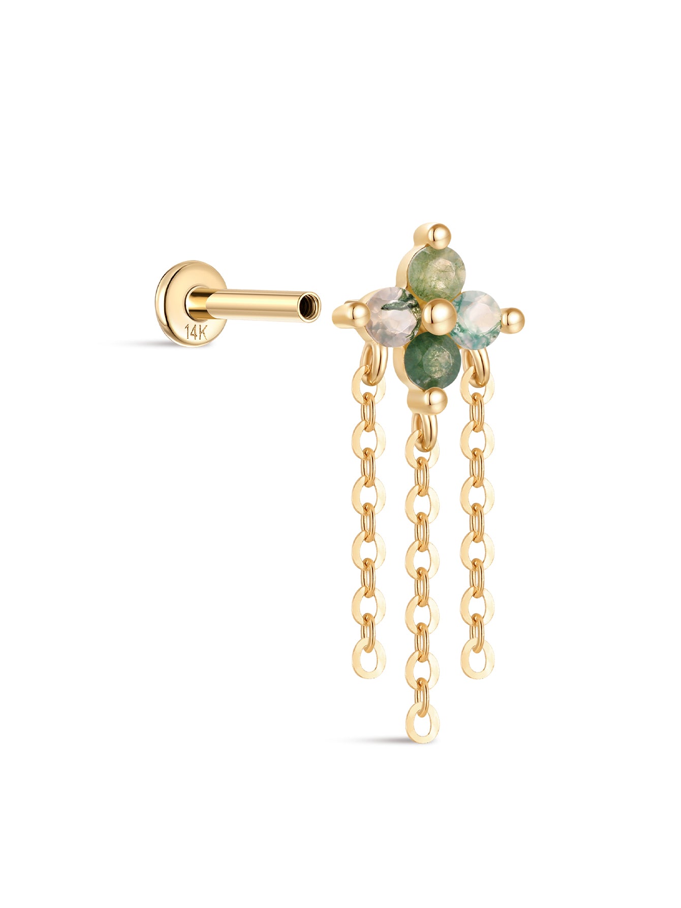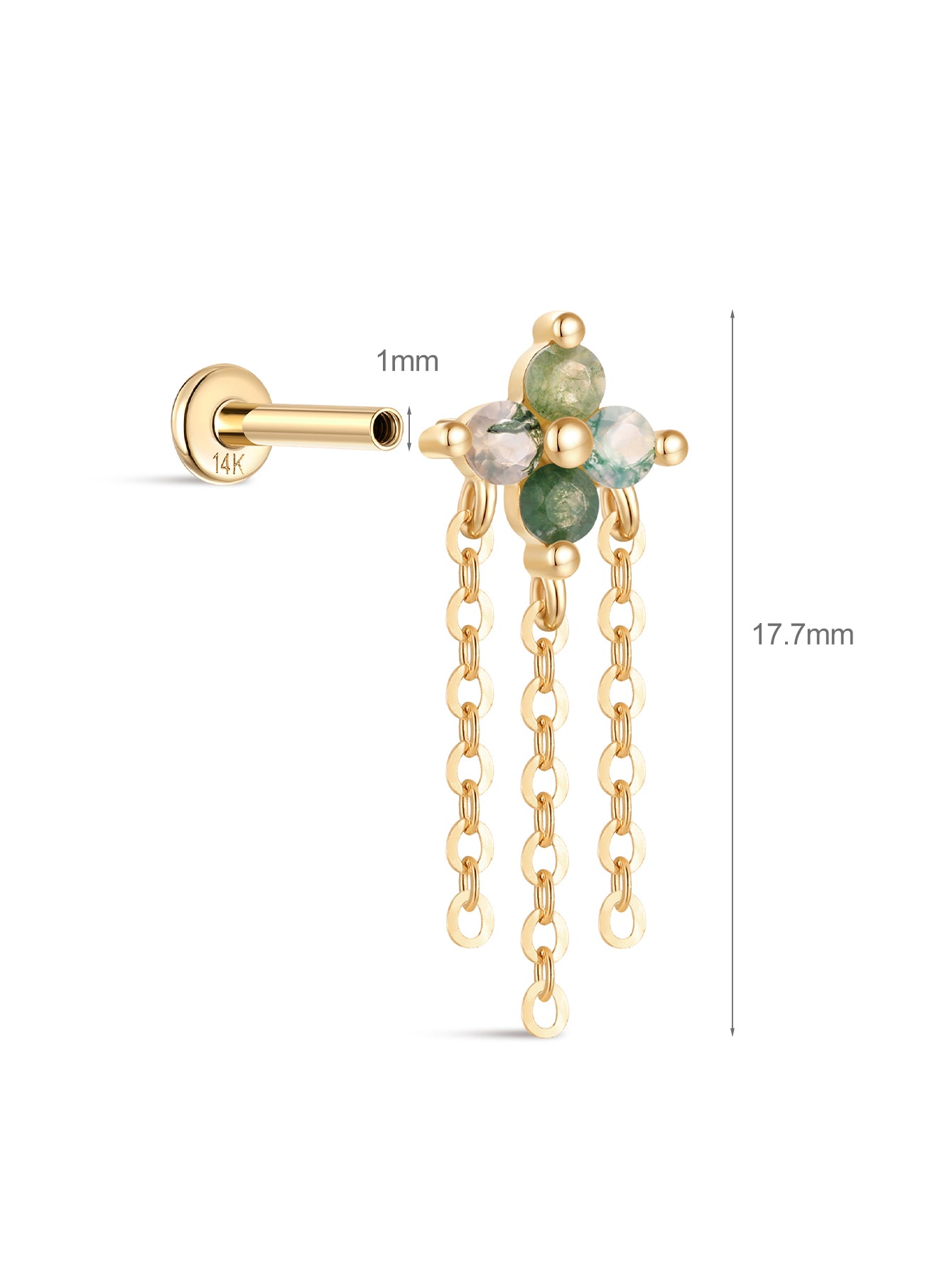 14K Solid Gold Moss Agate Flower Tassel Flatback Stud