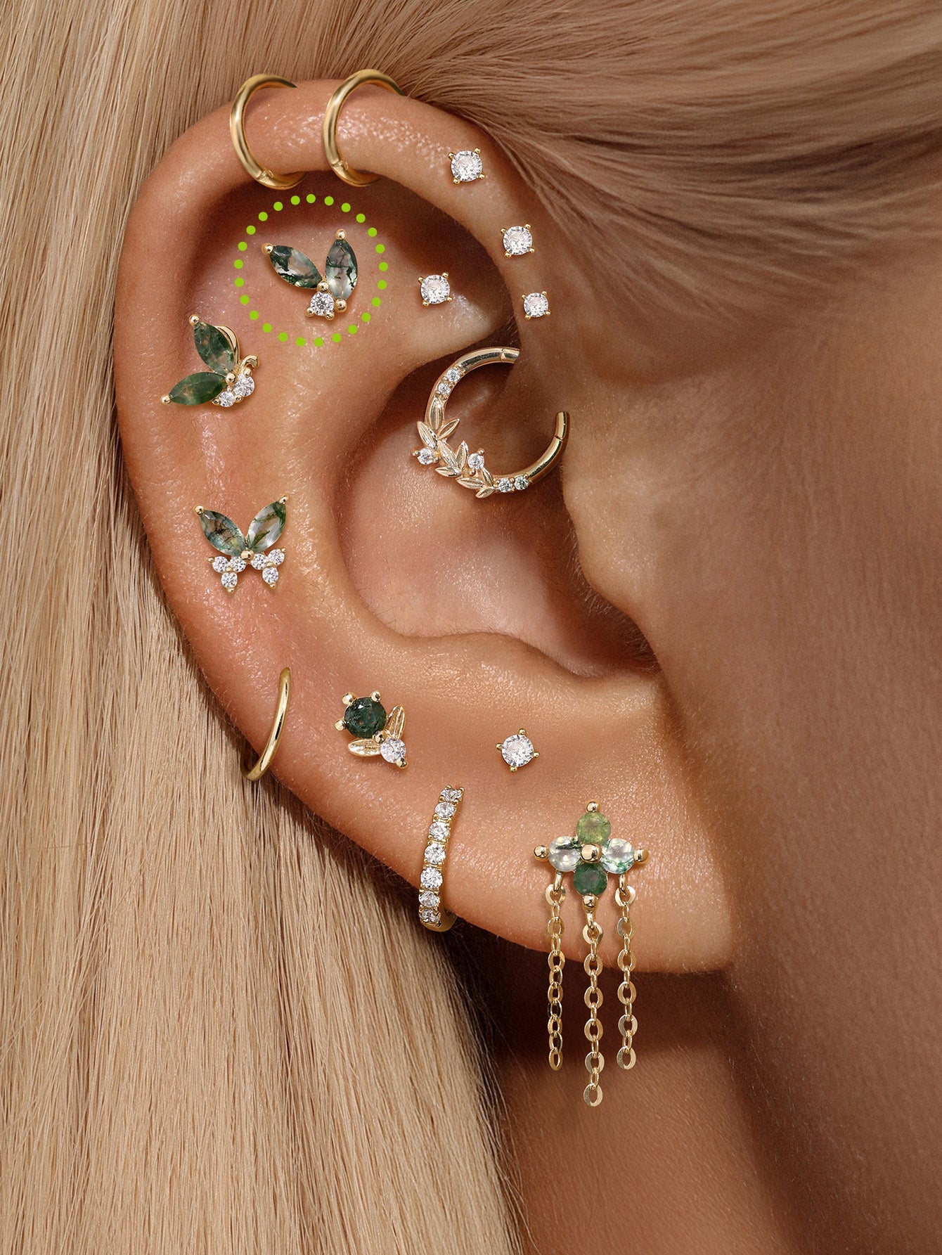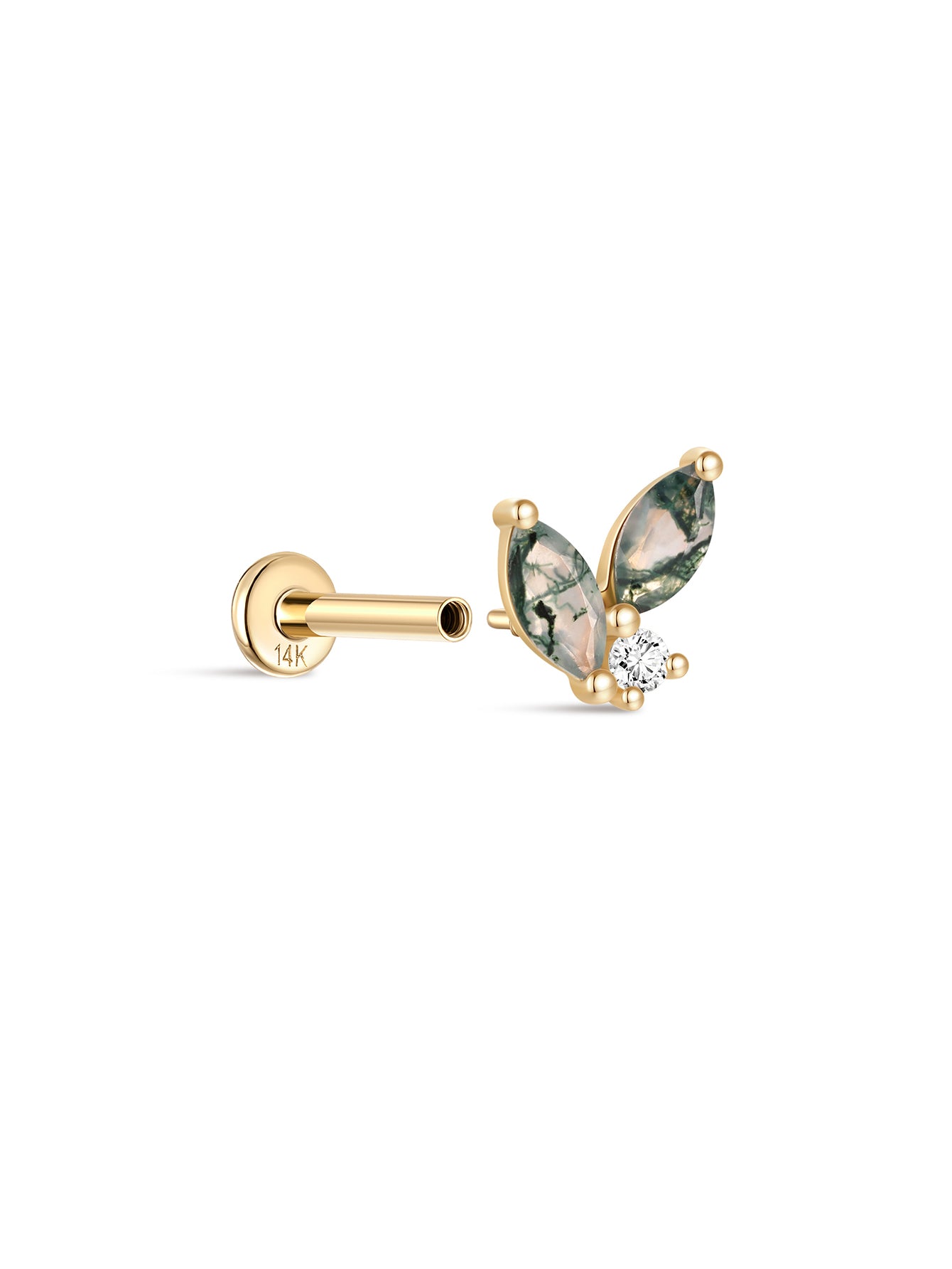 14K Solid Gold Moss Agate Horse Eye Flatback Stud