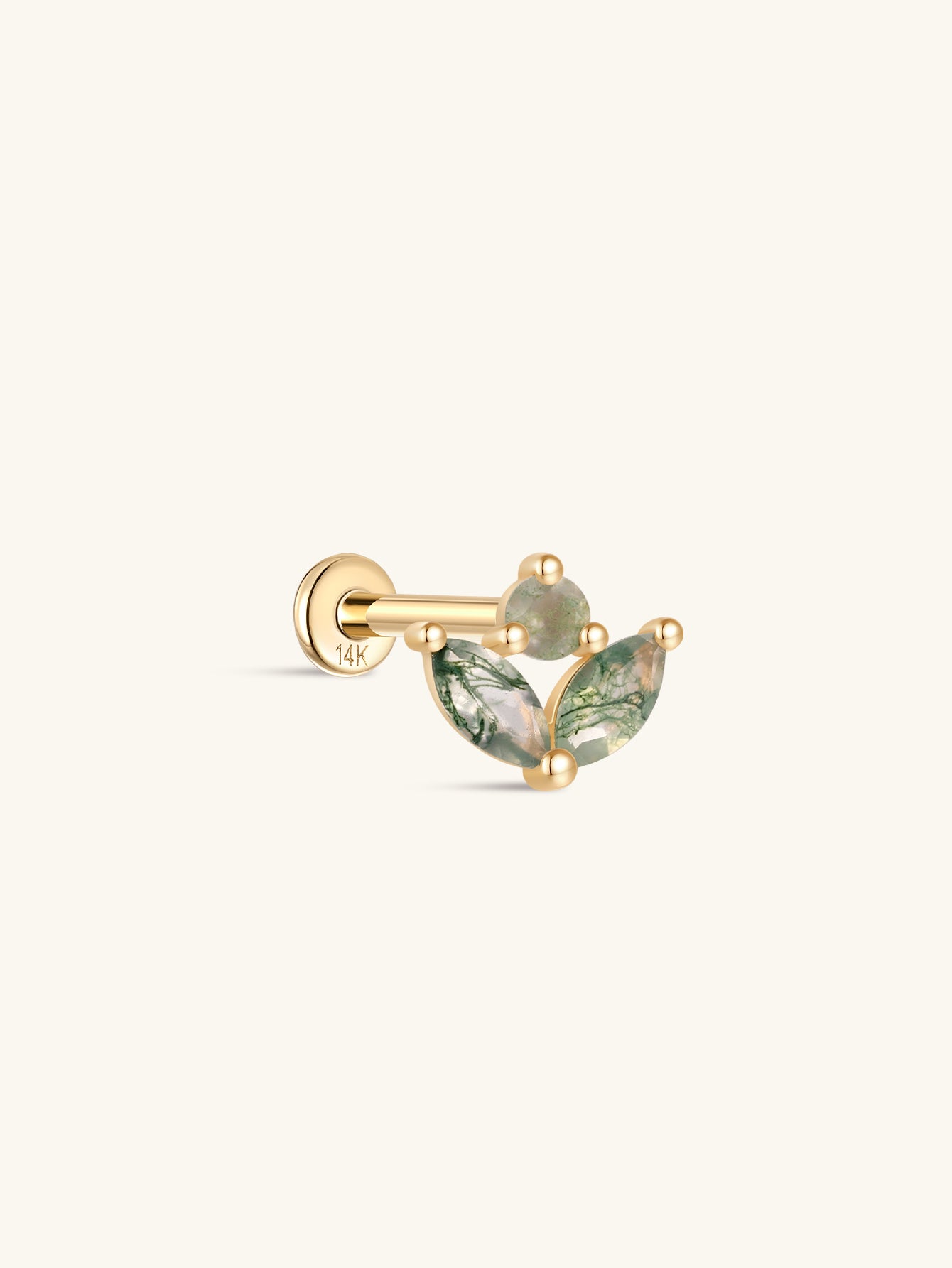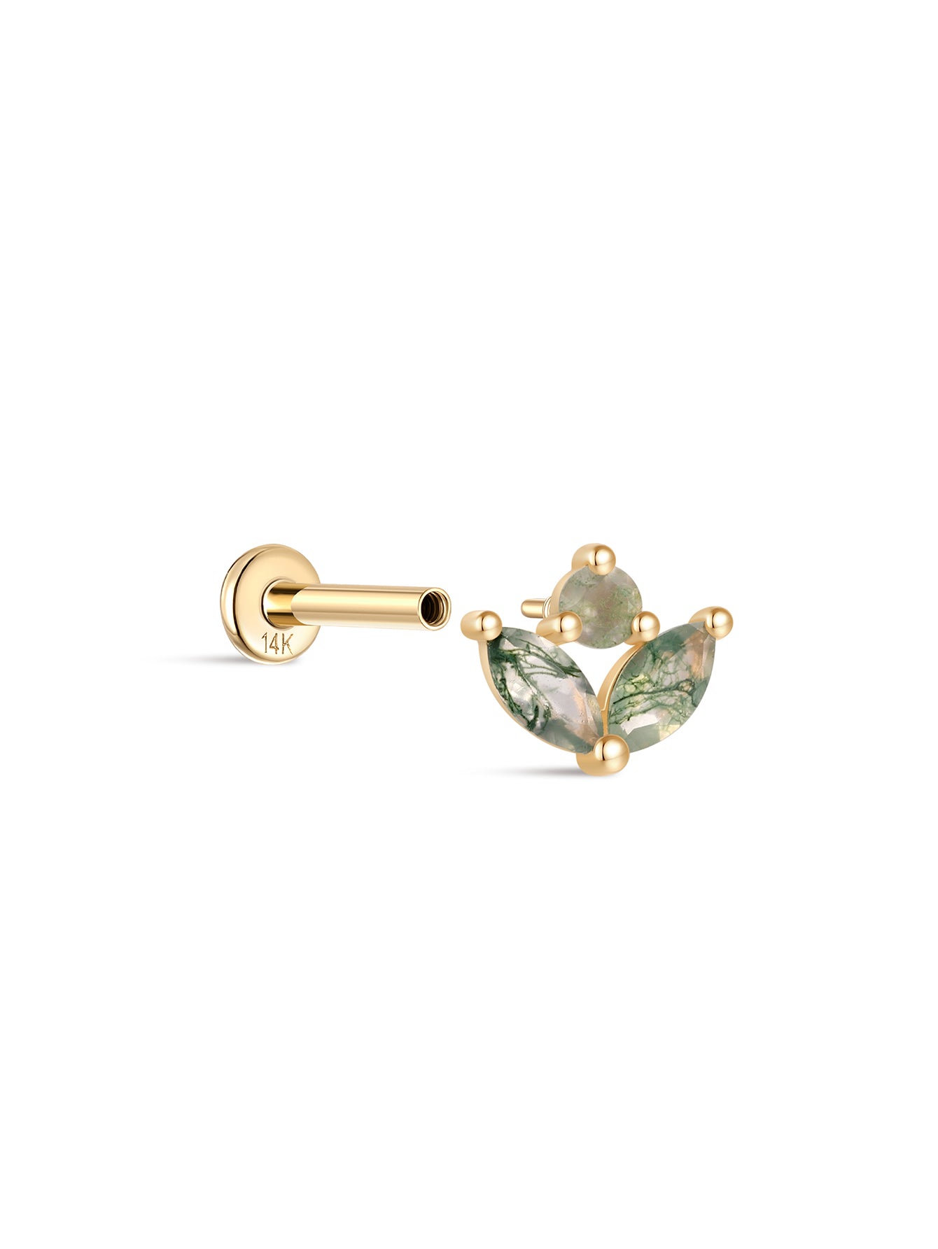 14K Solid Gold Moss Agate Marquise Flatback Stud