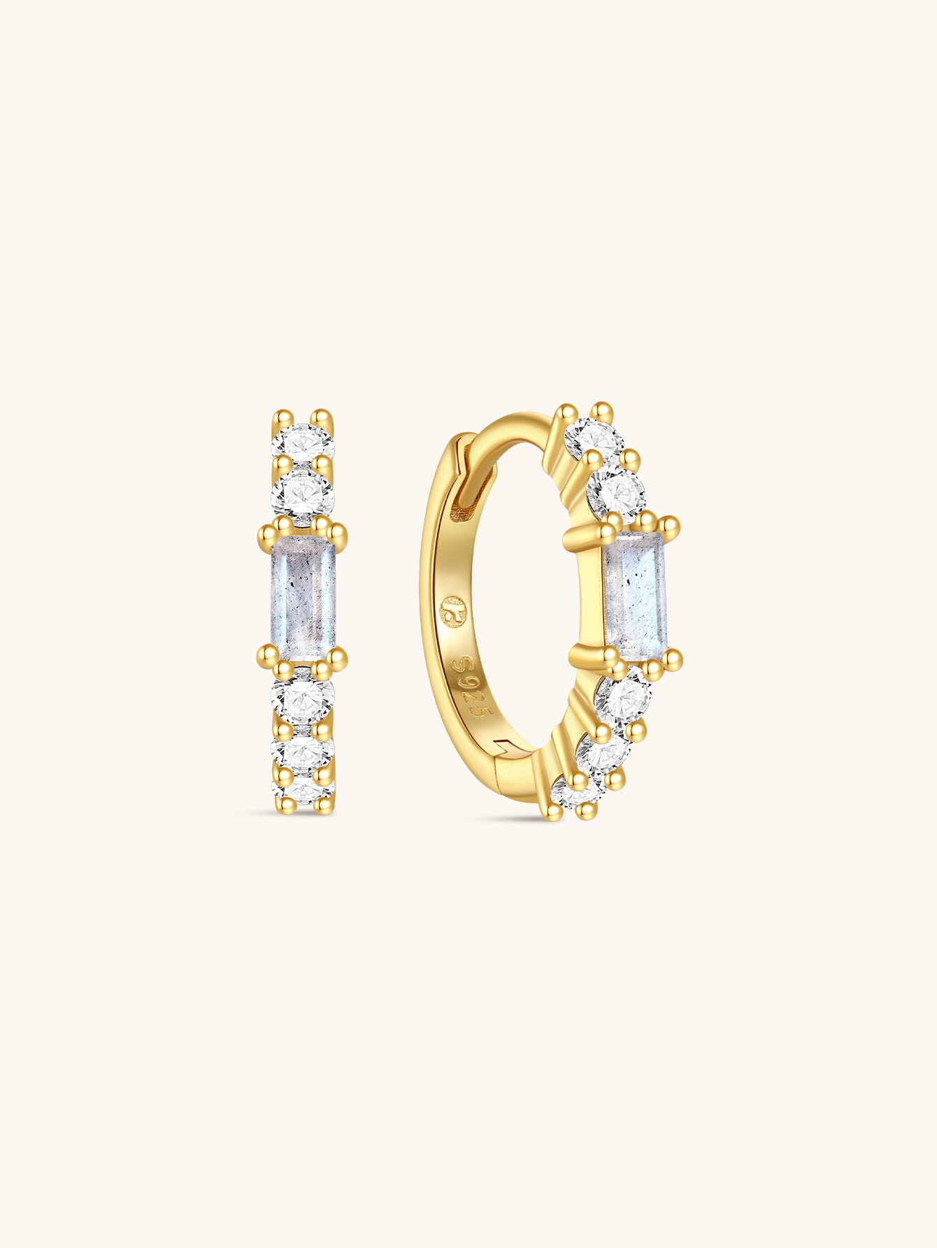 925 Sterling Silver Classic Faceting Blue Flash Labradorite Hoop Earrings