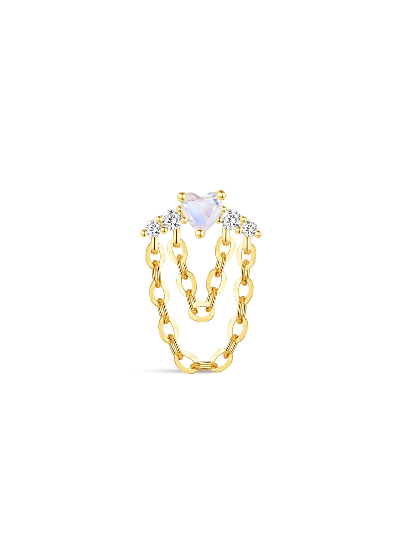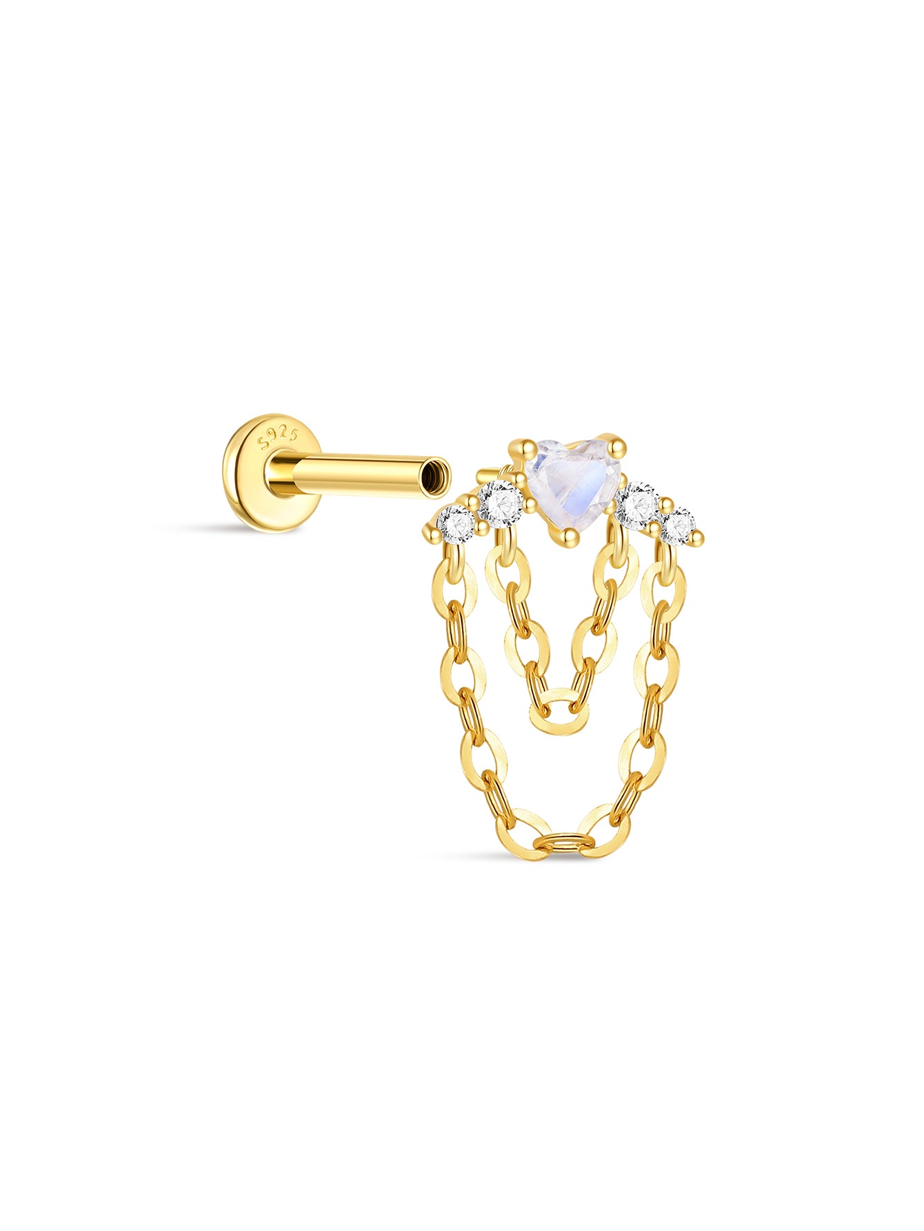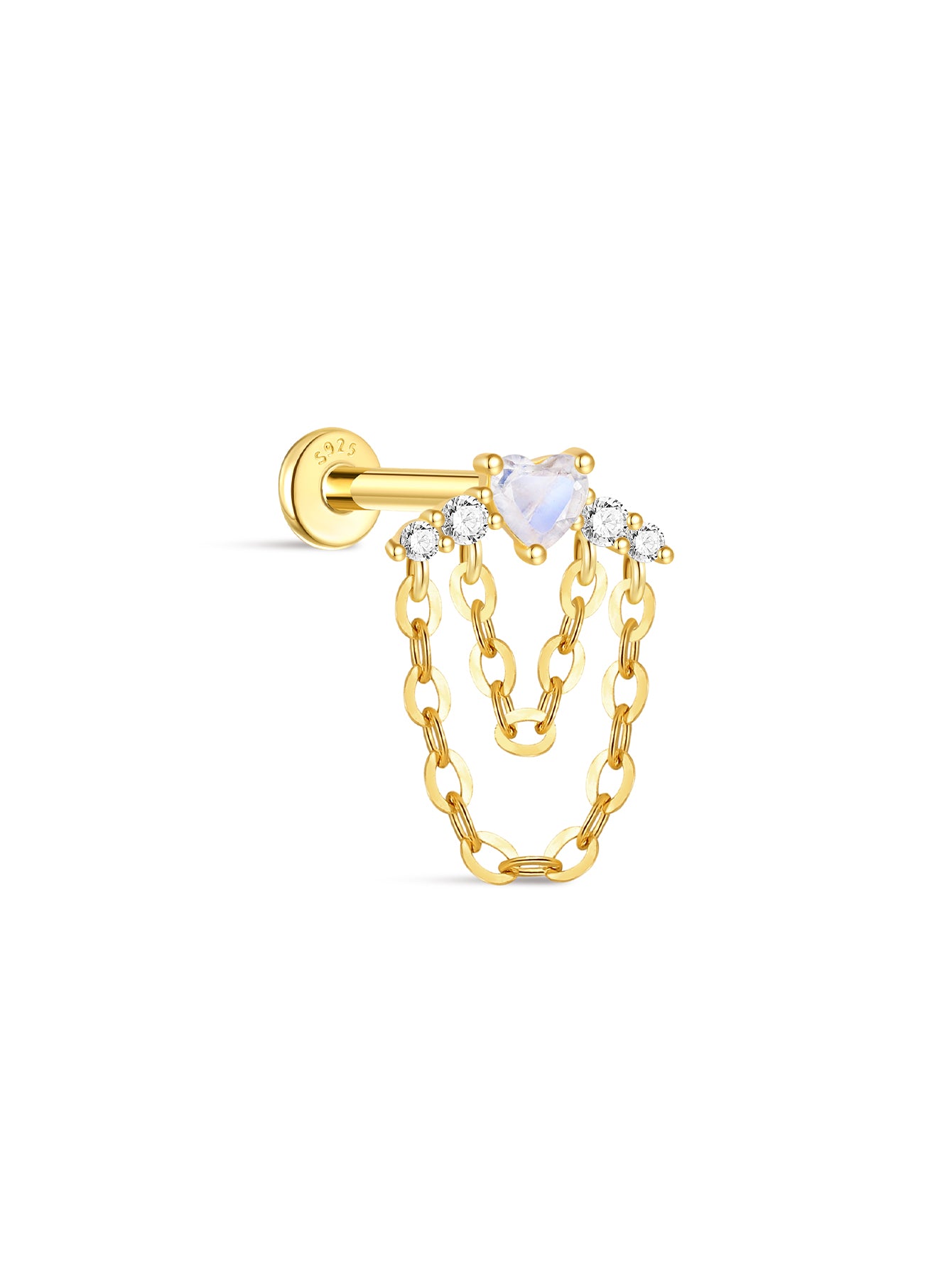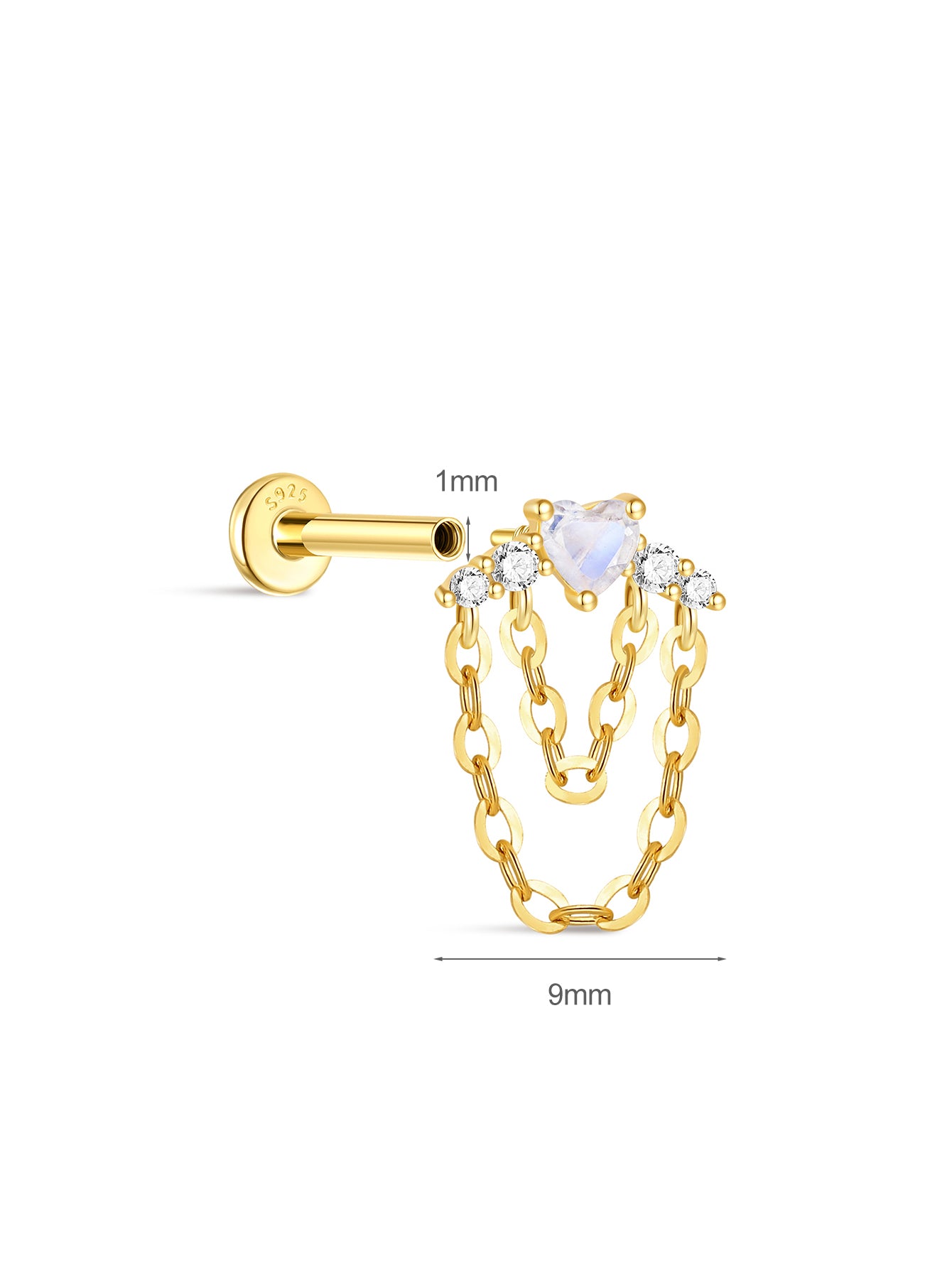 925 Sterling Silver Love Moonstone Chain Tassel Flatback Stud