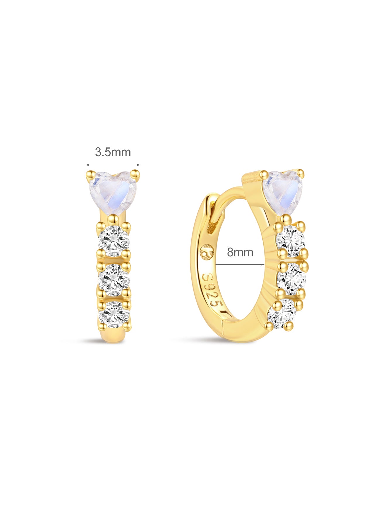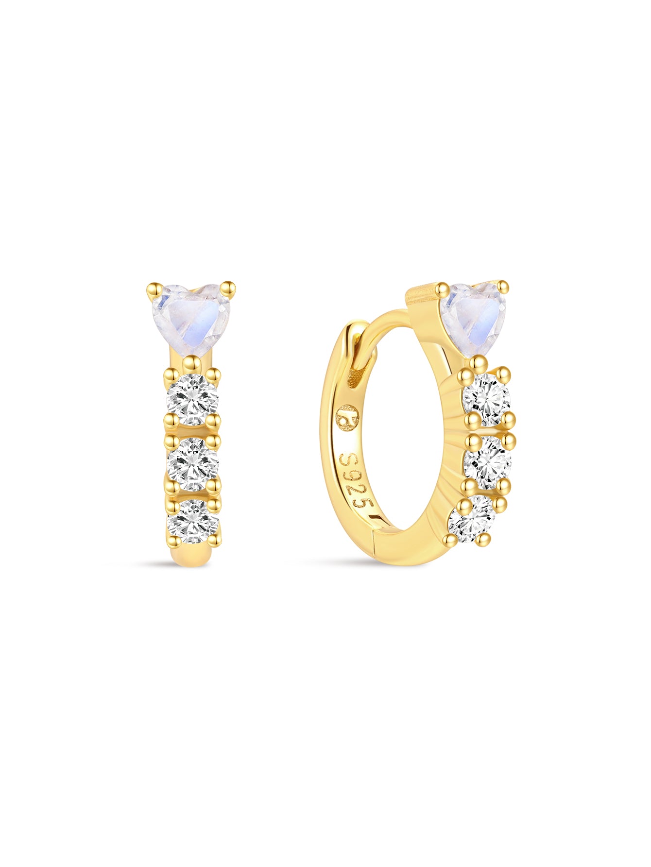 925 Sterling Silver Love Moonstone Hoop Earrings