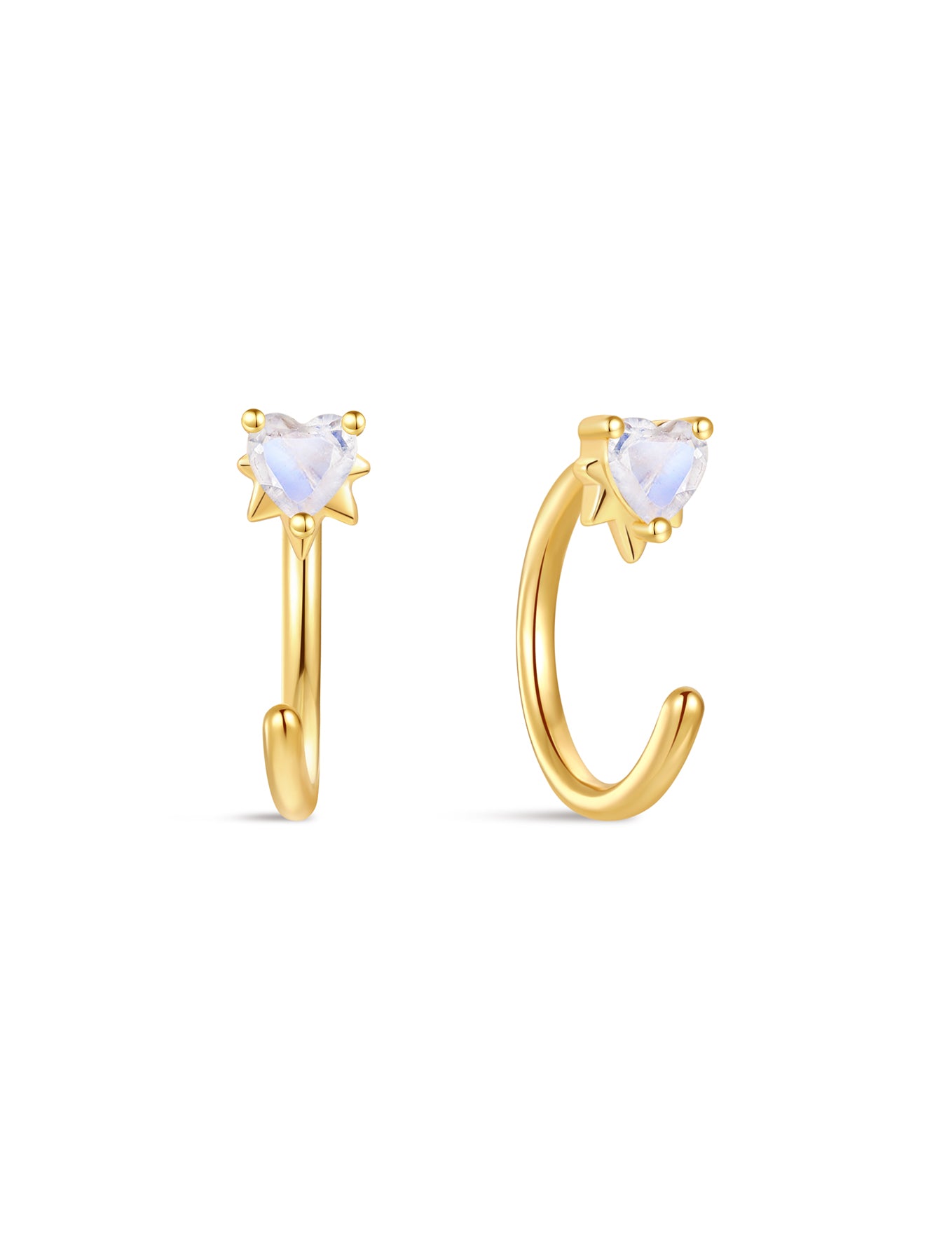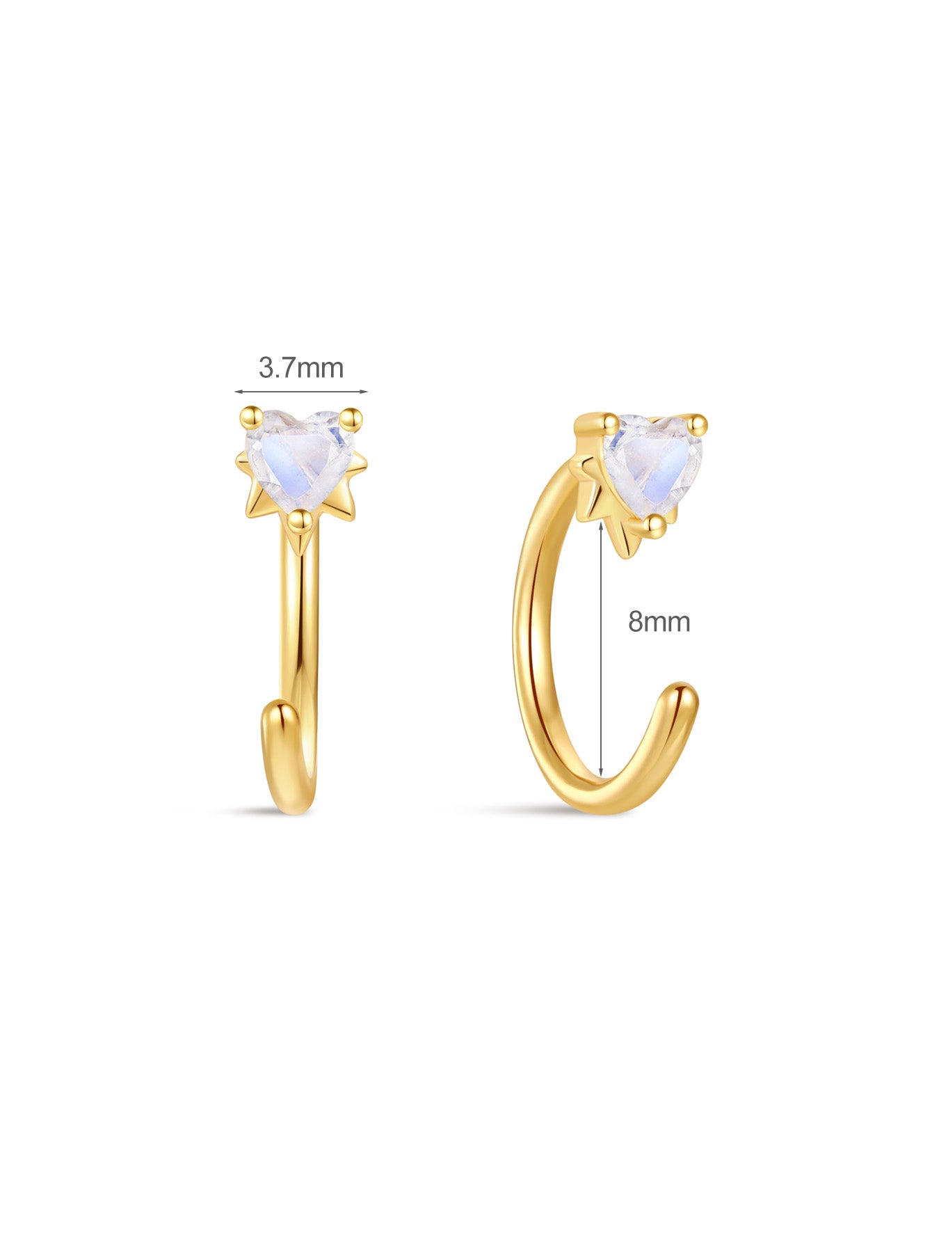 925 Sterling Silver Love Moonstone Open Huggies Earrings