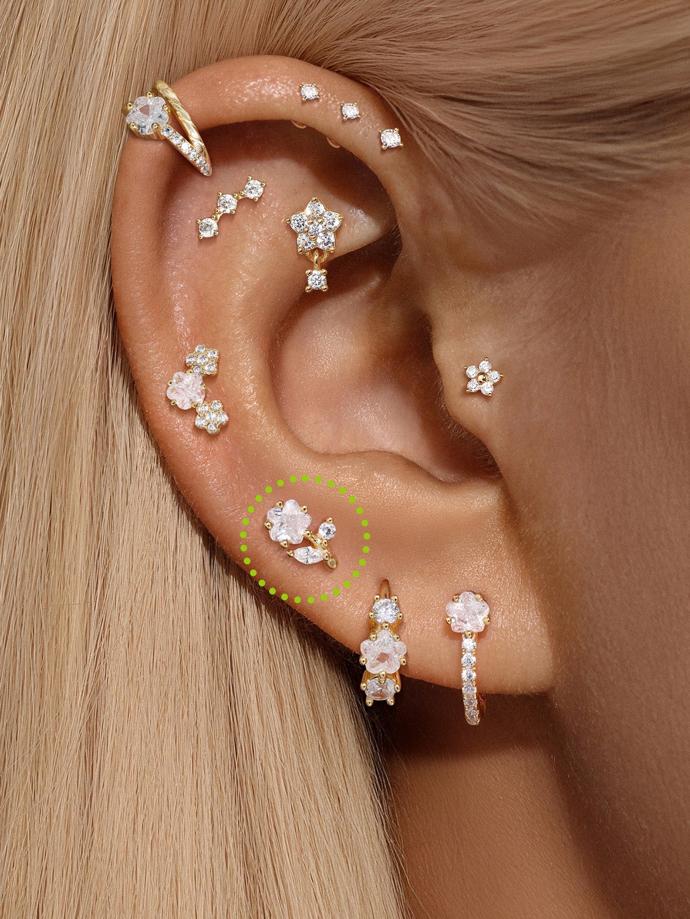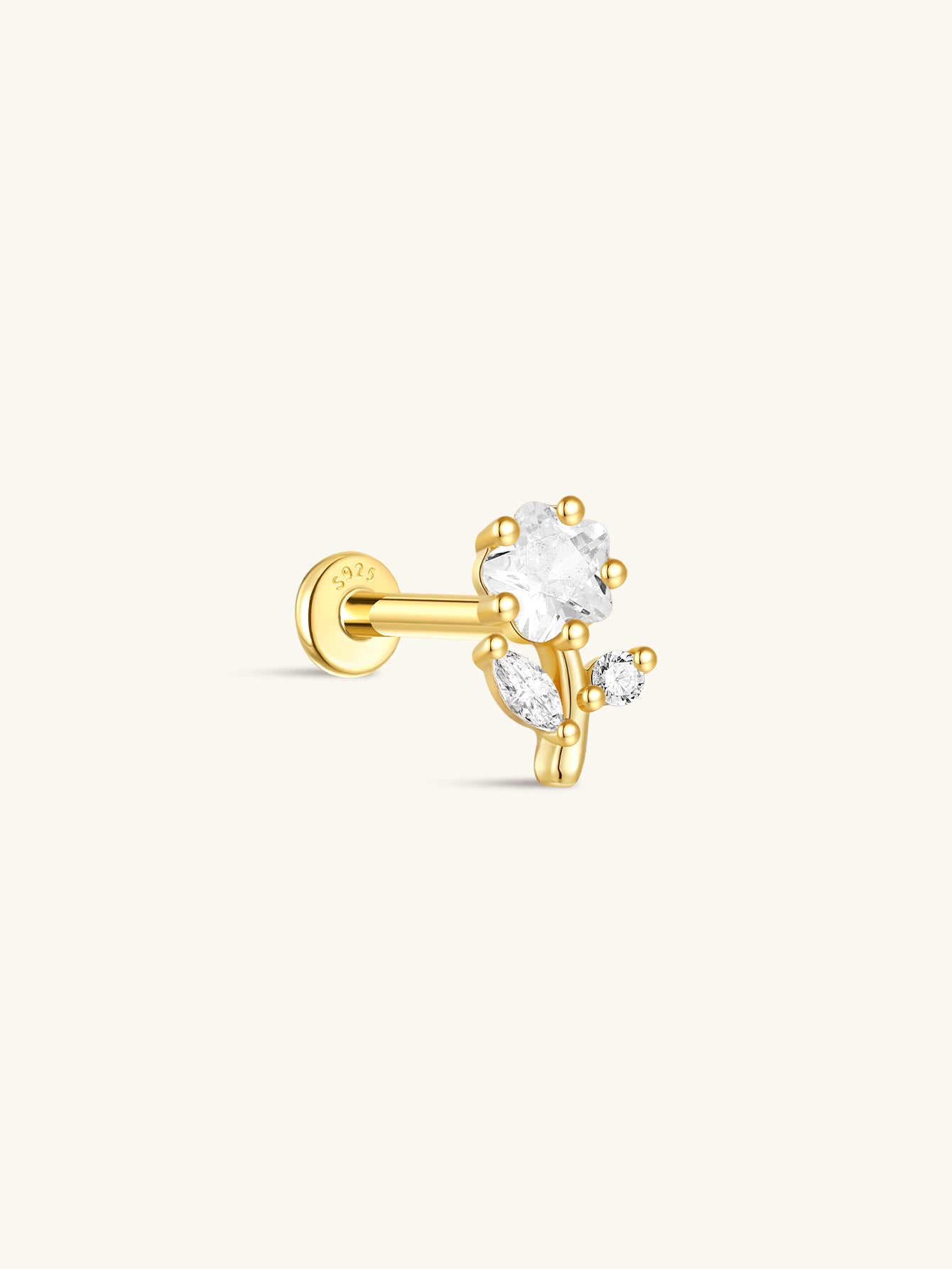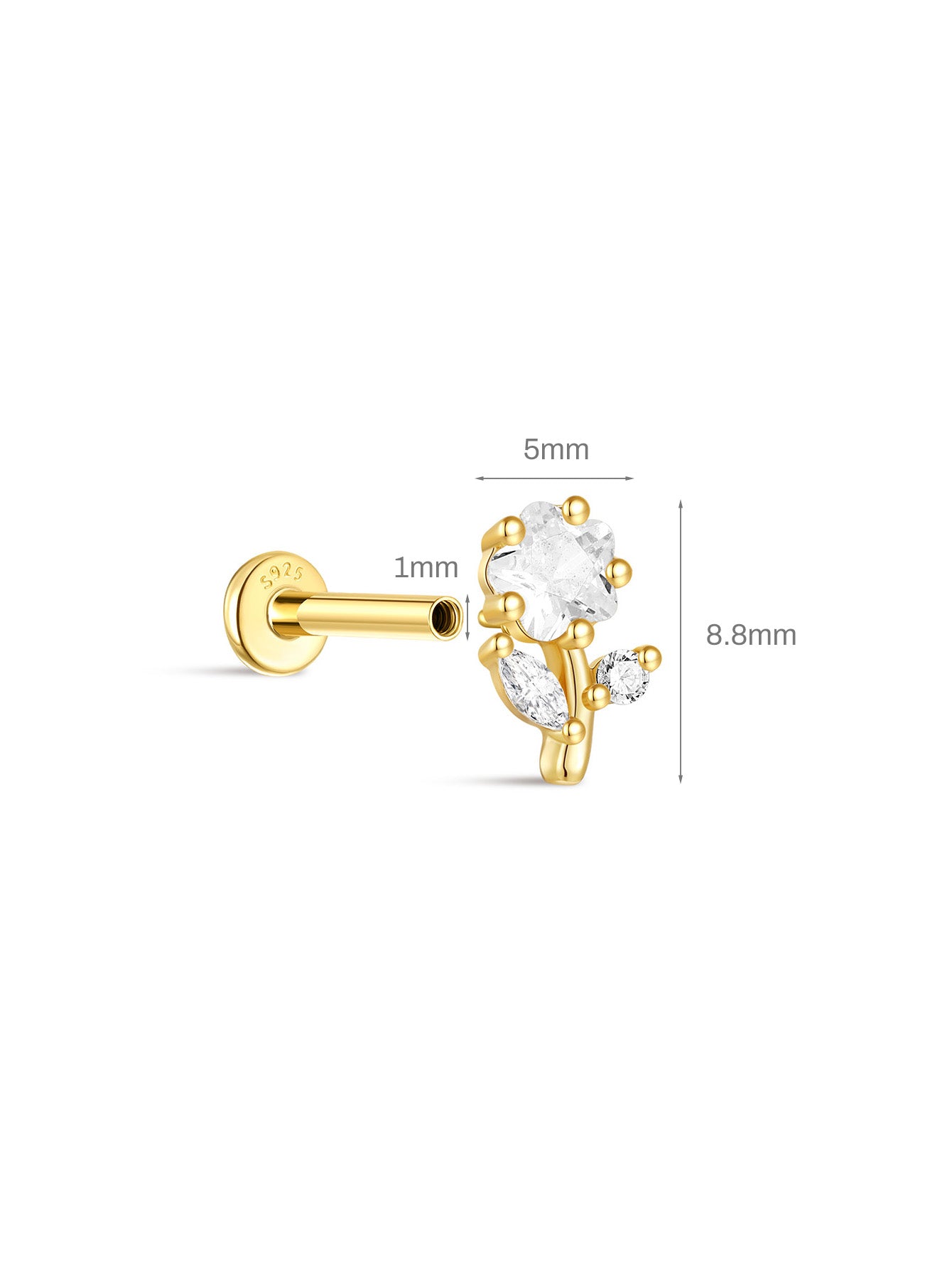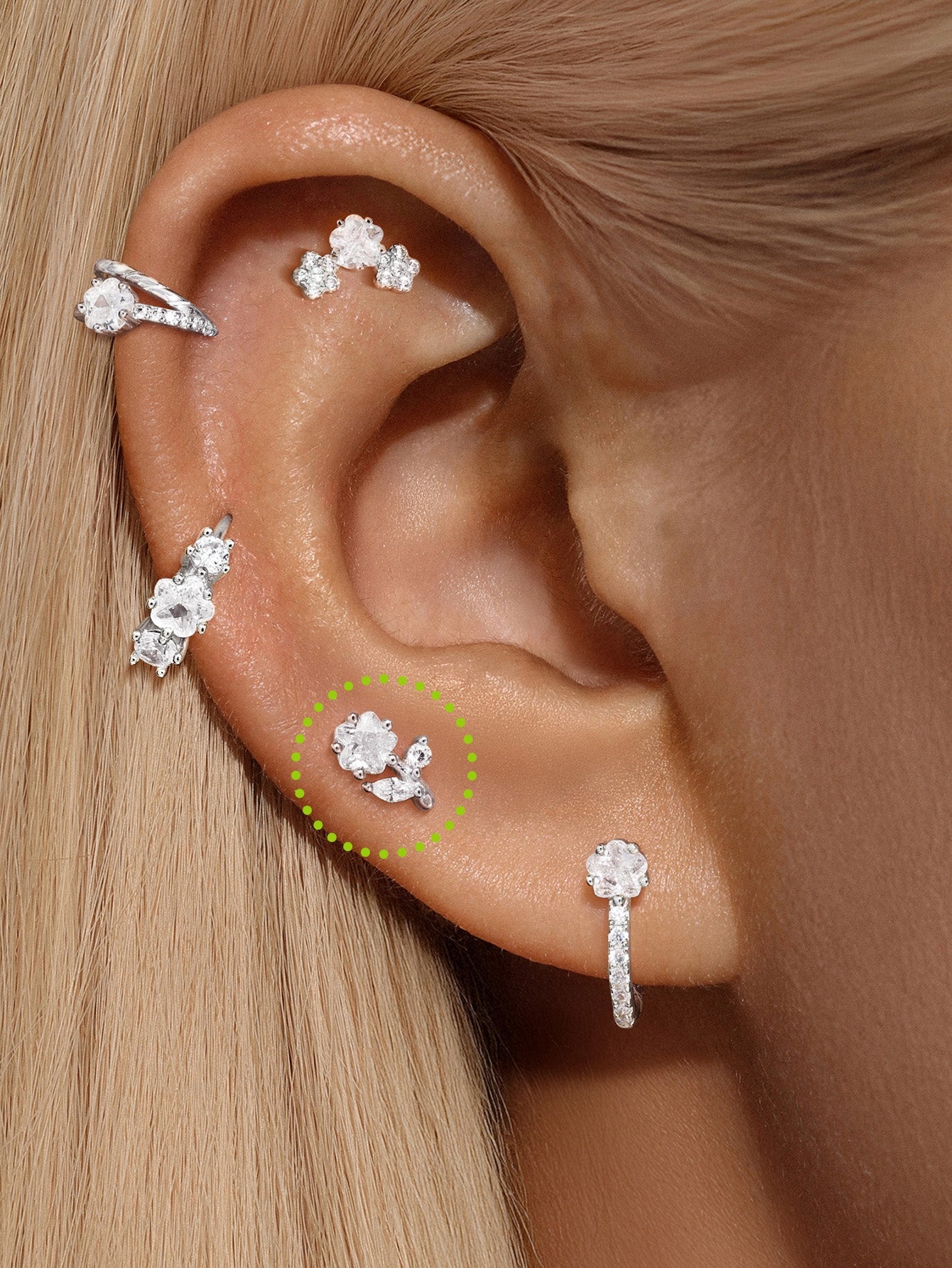 925 Sterling Silver Shiny Cherry Blossom Zirconia Flatback