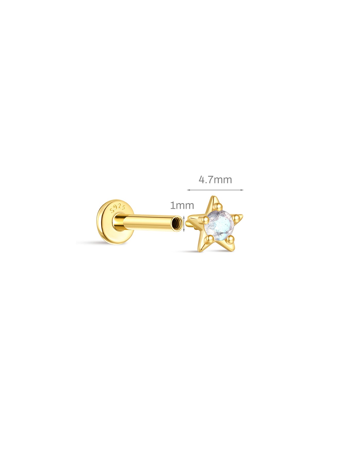 925 Sterling Silver Star Blue Flash Labradorite Flatback Stud