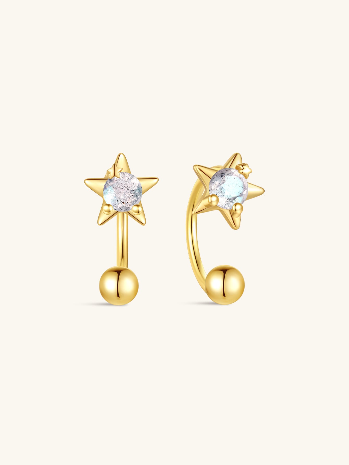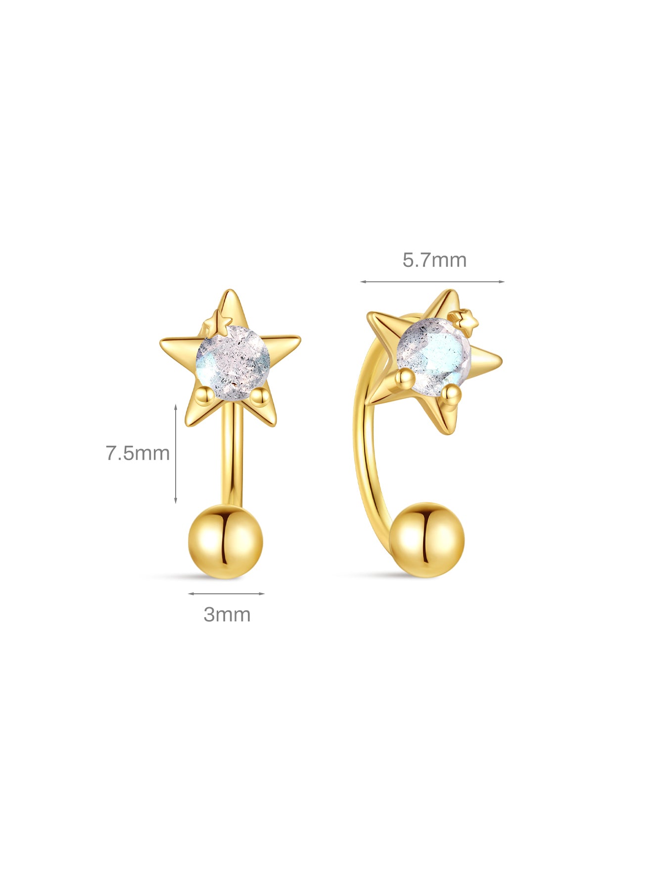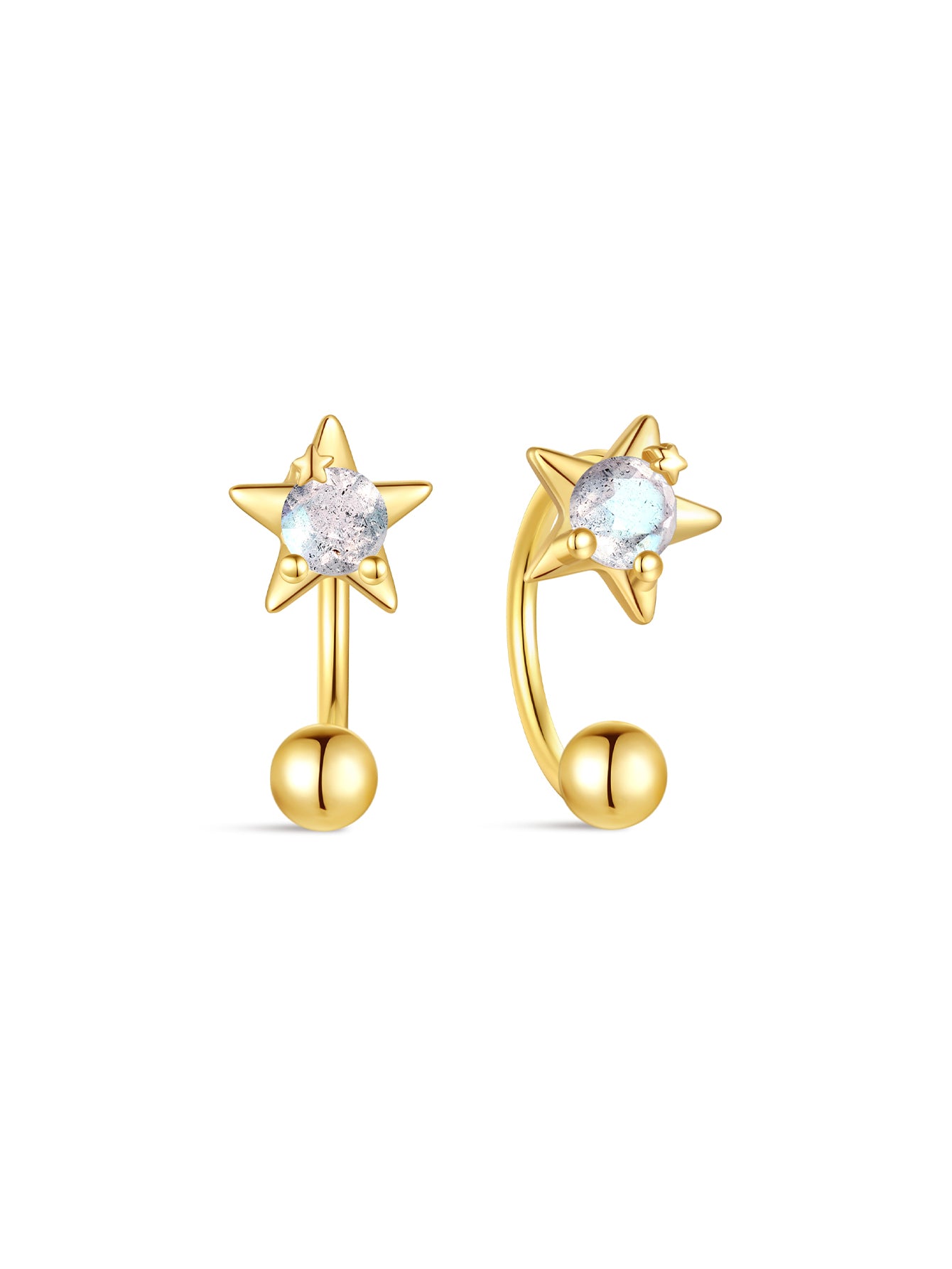 925 Sterling Silver Star Blue Flash Labradorite Open Huggies Earrings