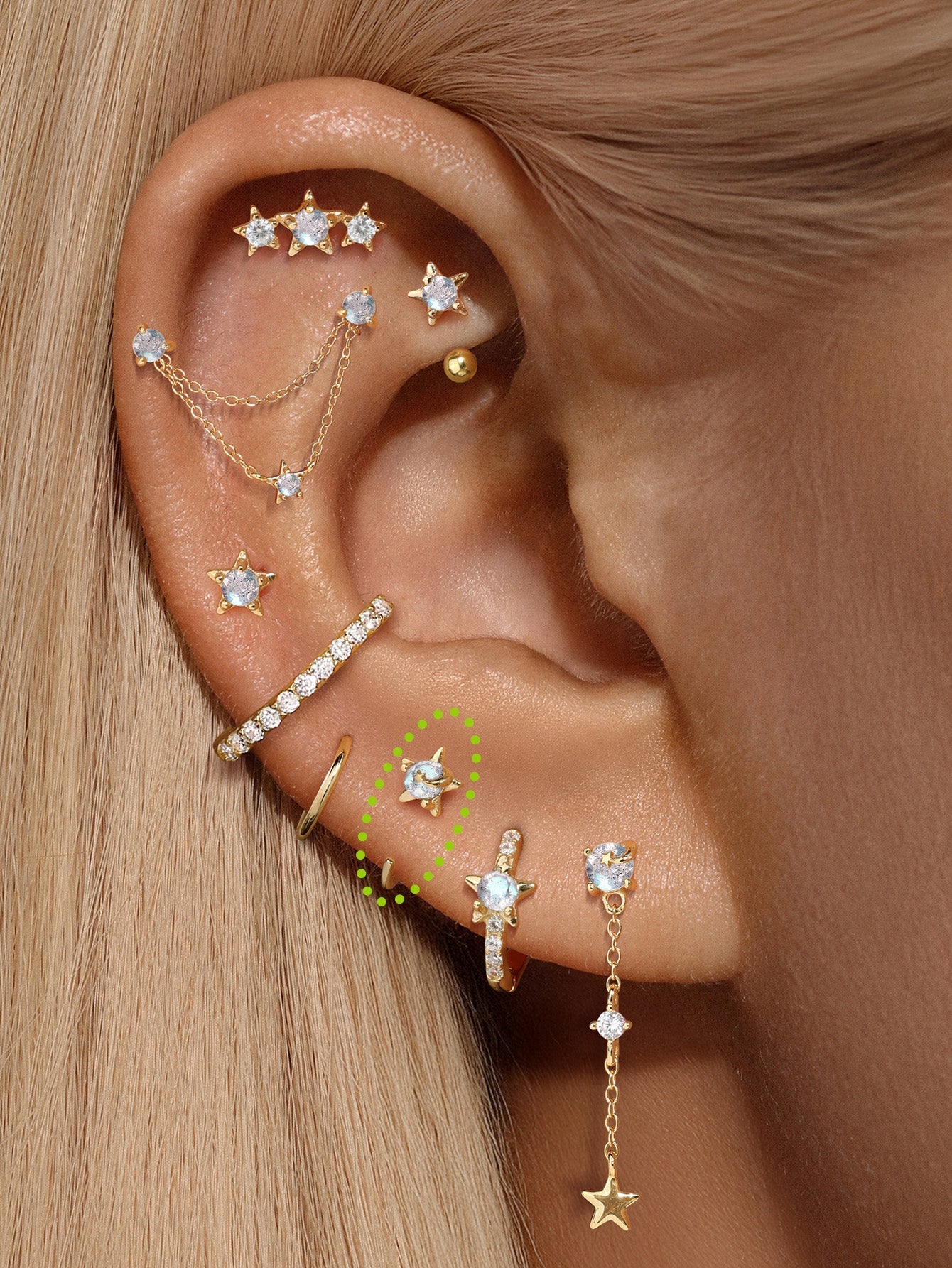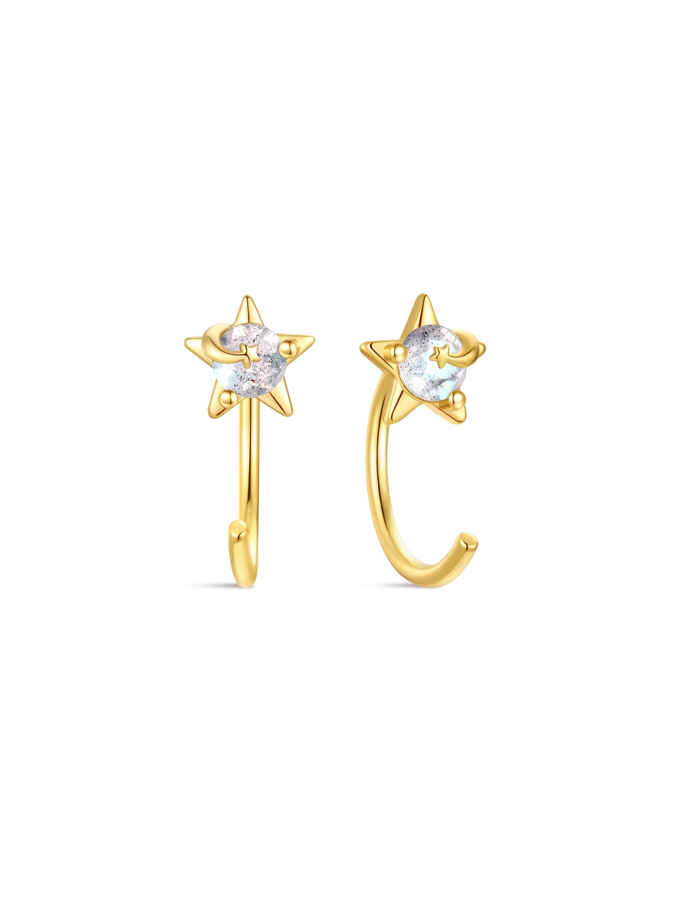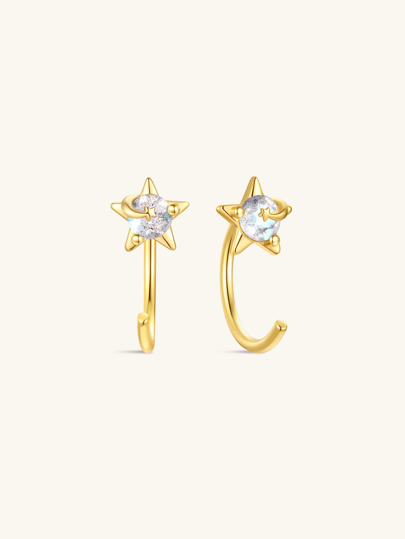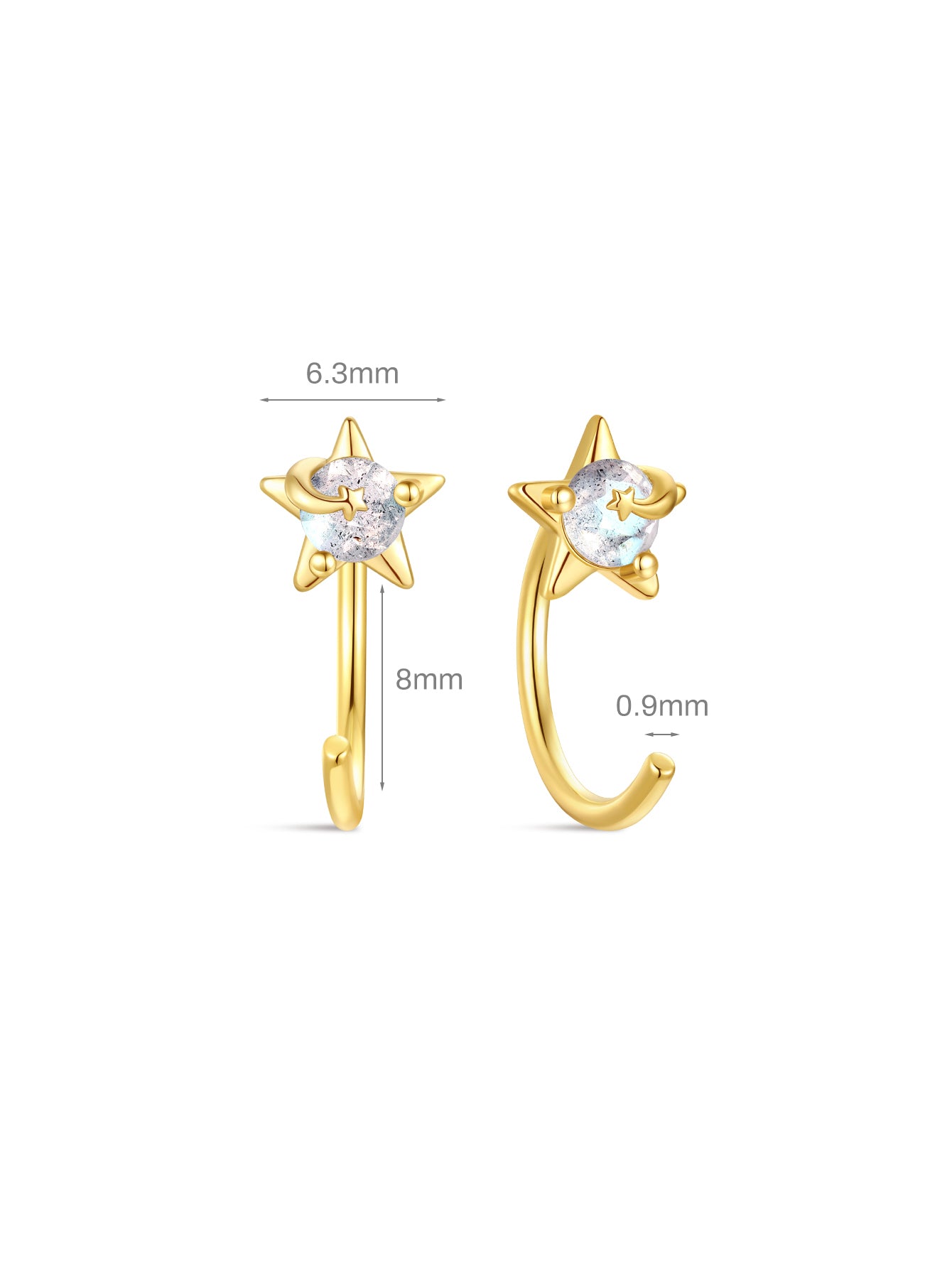 925 Sterling Silver Star Blue Flash Labradorite Open Huggies Earrings