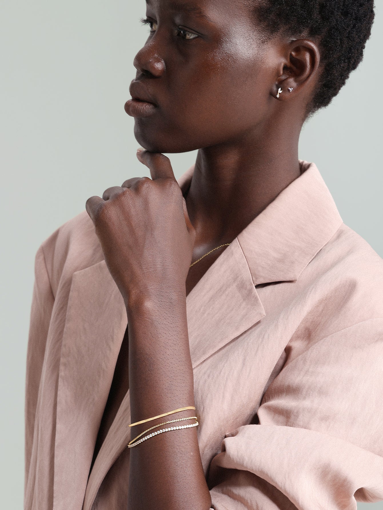 Uma corrente de caixa fina e arejada que capta a luz a cada movimento. Feito em vermeil grosso de ouro 18k para um brilho quente e duradouro. Mínimo o suficiente para uso diário, impressionante o suficiente para empilhar.