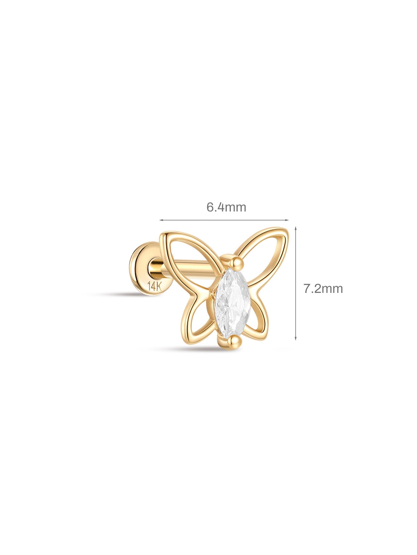 Piercing de orelha com borboletas em ouro maciço 14K