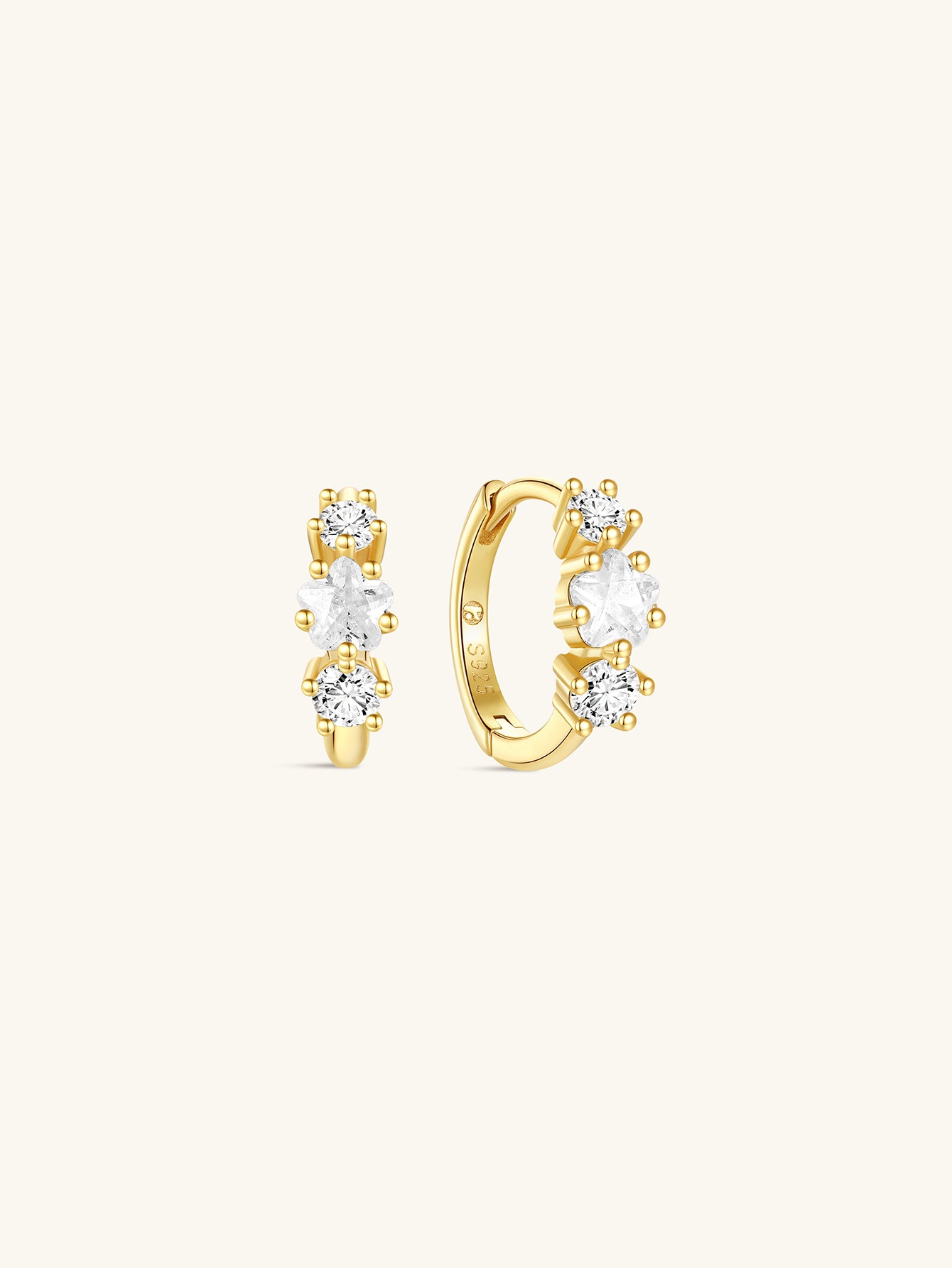 Brincos de argola de flor de zircônia em flor de cerejeira em prata esterlina 925