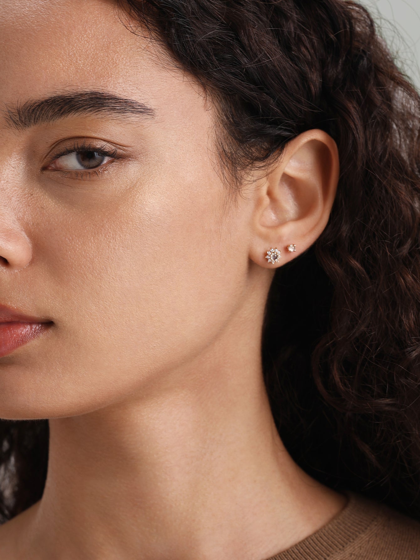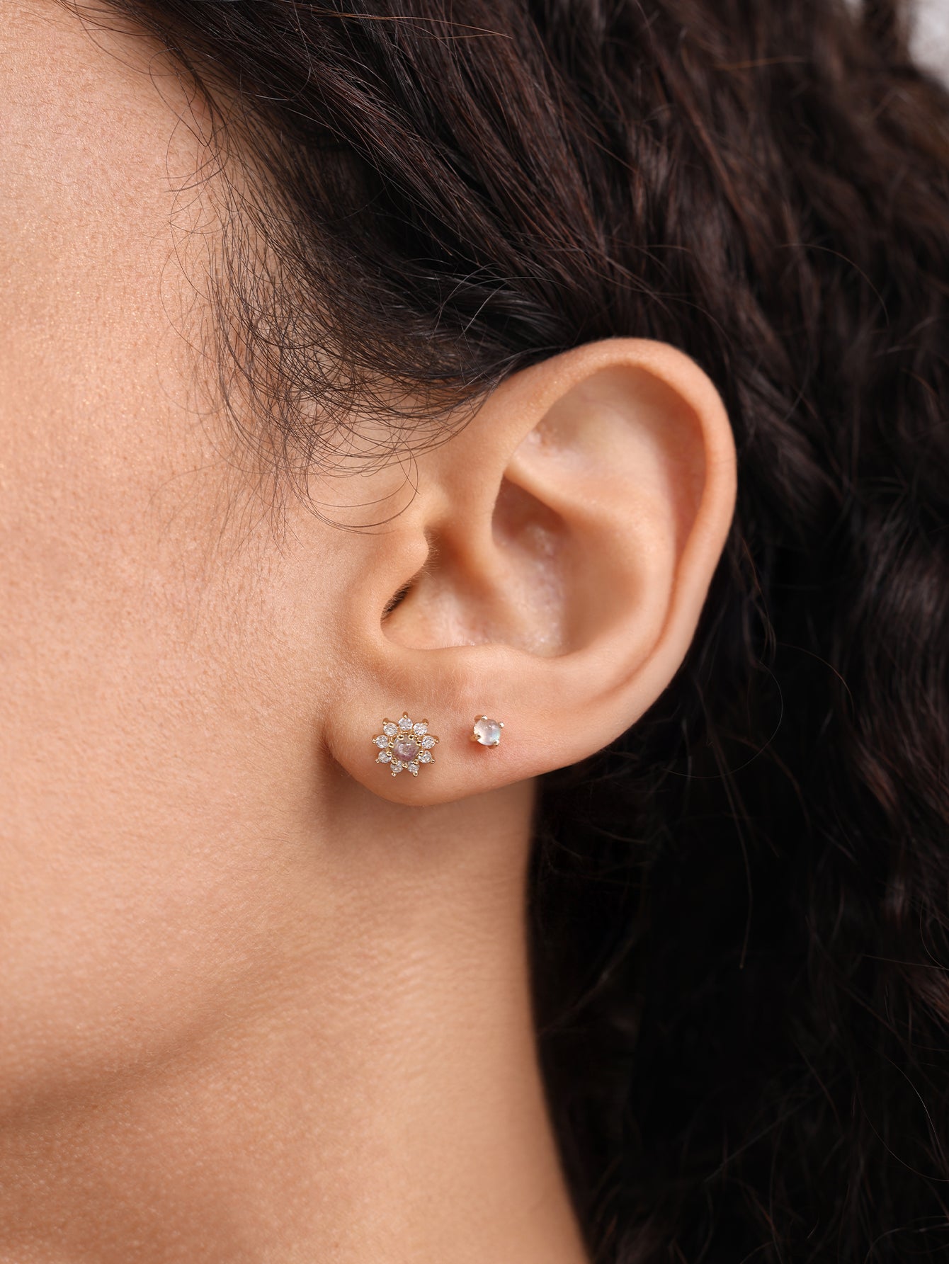 Stud de pedra lunar de girassol em ouro maciço 14K